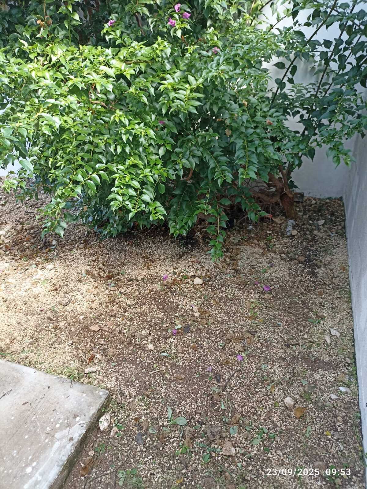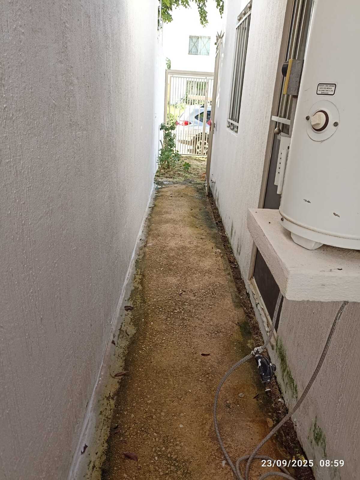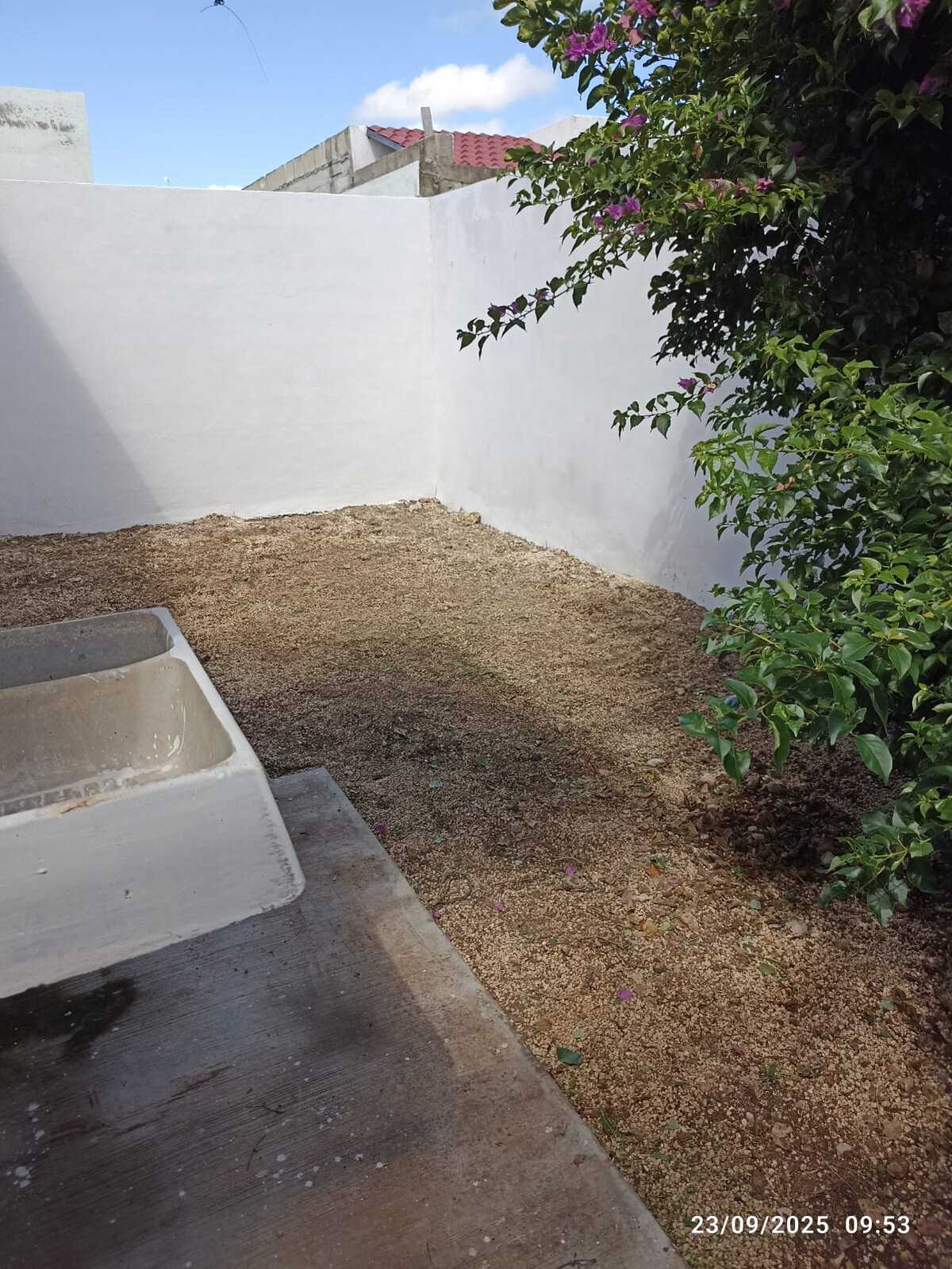 House for rent unfurnished, single-story with living room, dining room, kitchen with bar, 2 bedrooms with air conditioning, 1 full bathroom. Uncovered garage with gate. Pedestrian access. Protectors and mosquito nets, ceiling fans, and gas heater.