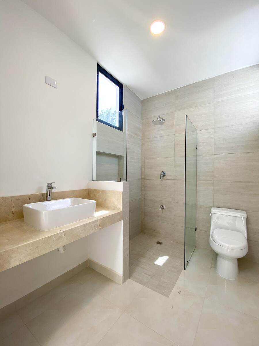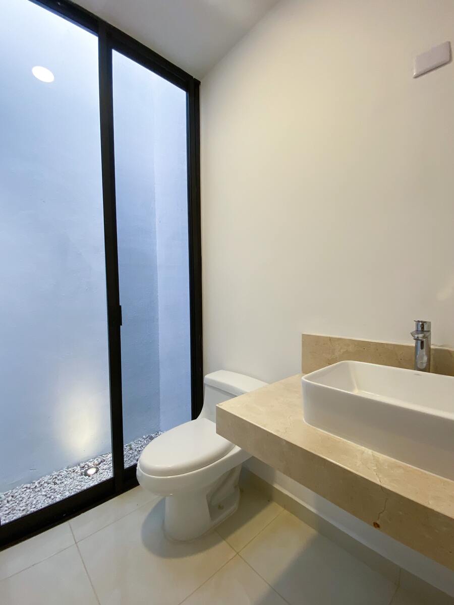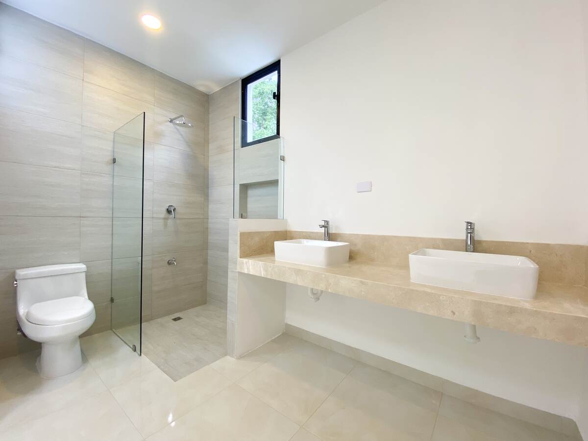 Esta casa cuenta con 3 habitaciones, cada una con clóset vestidor y baño con acabados de lujo, además de una habitación en planta baja con baño completo y salida a la piscina. También ofrece una amplia cocina equipada con carpinterías de mdf hidrofugado, estufa de gas con 5 quemadores y diseño de iluminación.