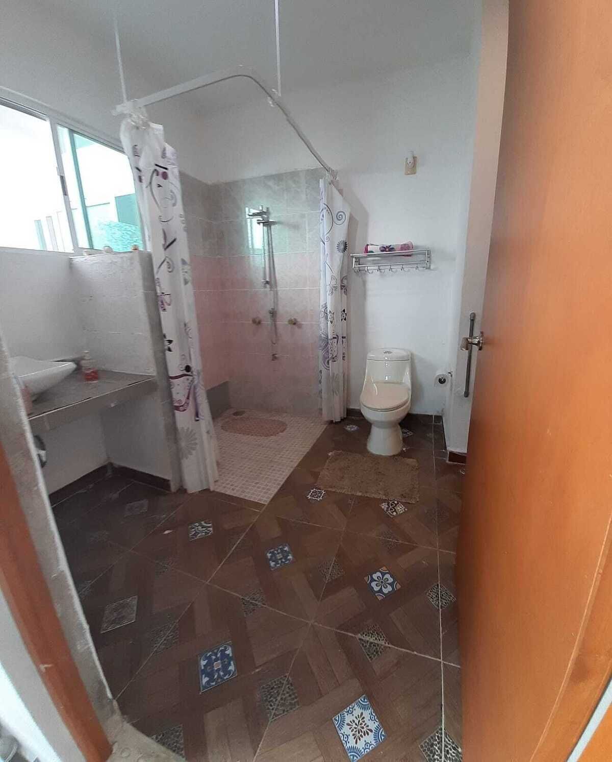 Planta baja: sala, estancia, comedor, 1 recámara, 2 baños completos, closet, terraza techada, cocina nueva, lavadero.