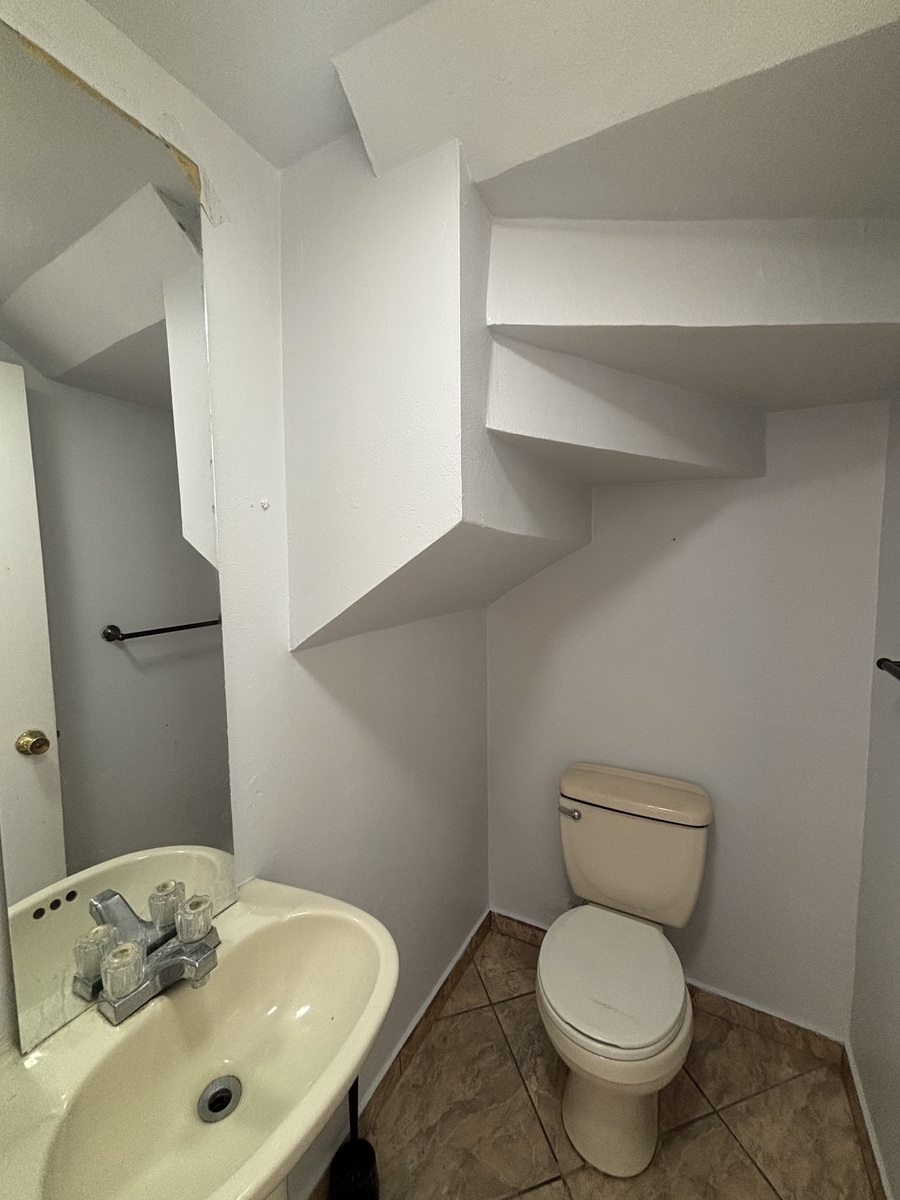 1.5 bathrooms (half bath on the ground floor, full bath on the upper floor)
