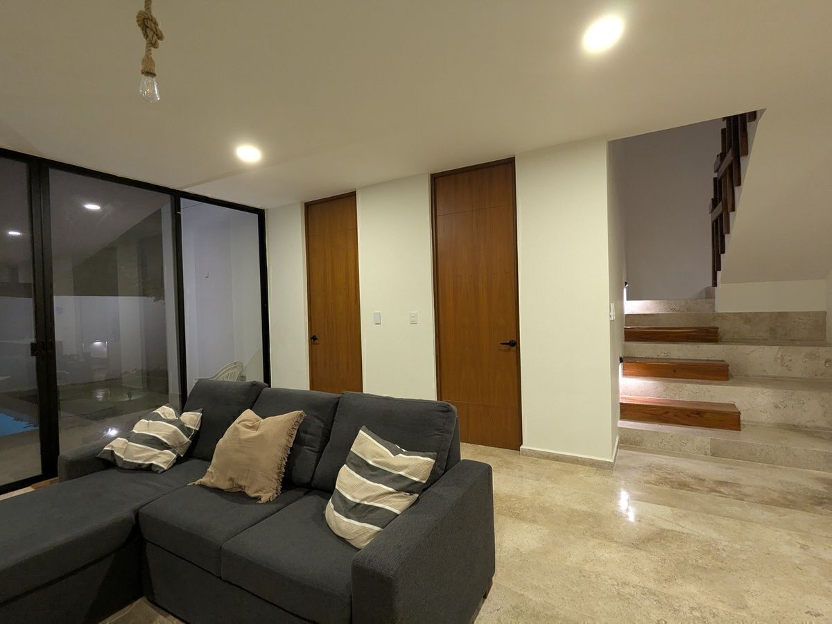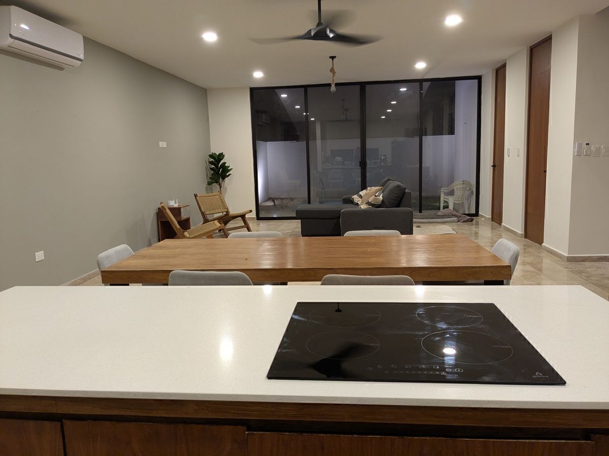 Beautiful new, modern, and efficient house, with solar panels and high-efficiency air conditioners, located in San Antonio Hool, near Dzityá. Fully furnished, with well-distributed spaces for greater comfort.