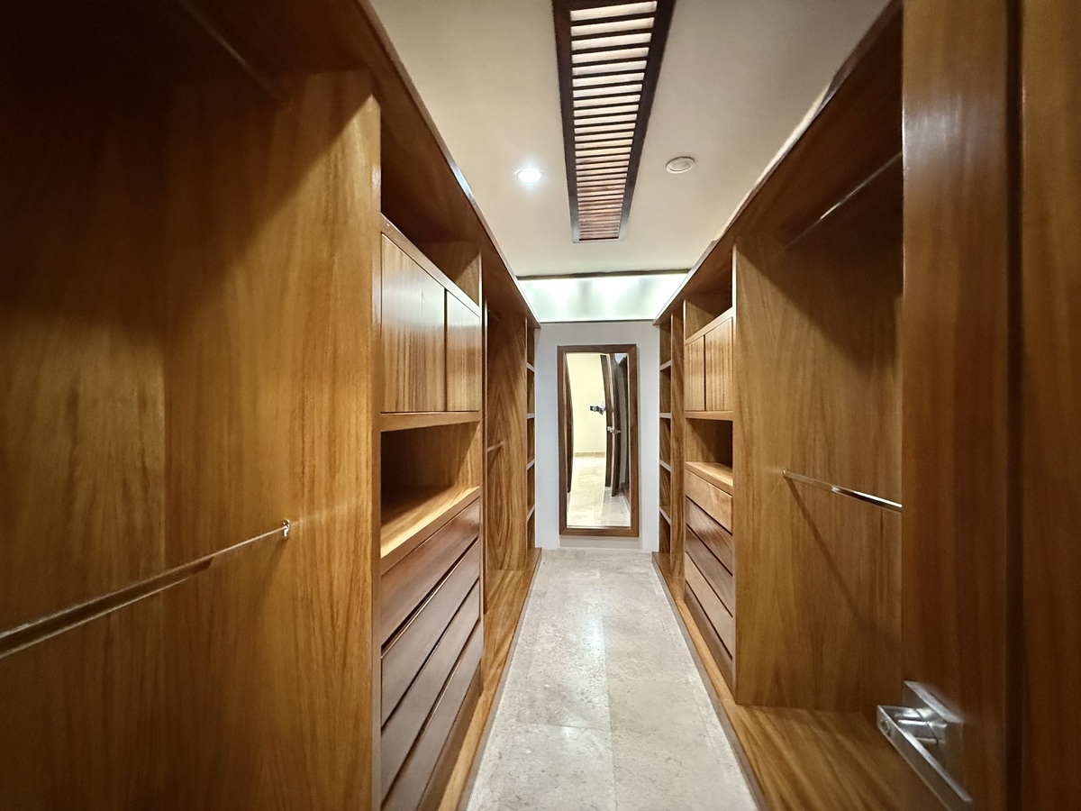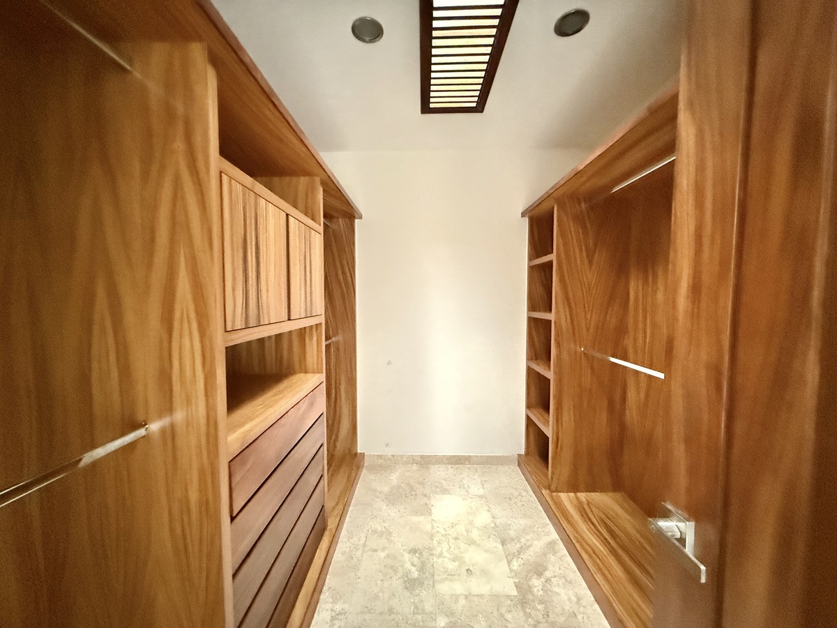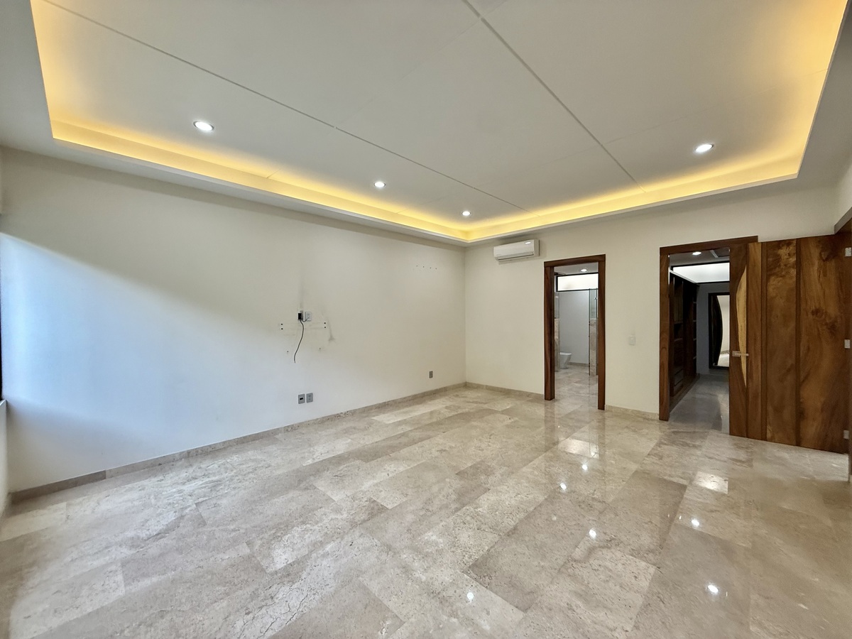 En planta alta cuenta con 4 recámaras cada una con baño y vestidor y un estar de T.V.