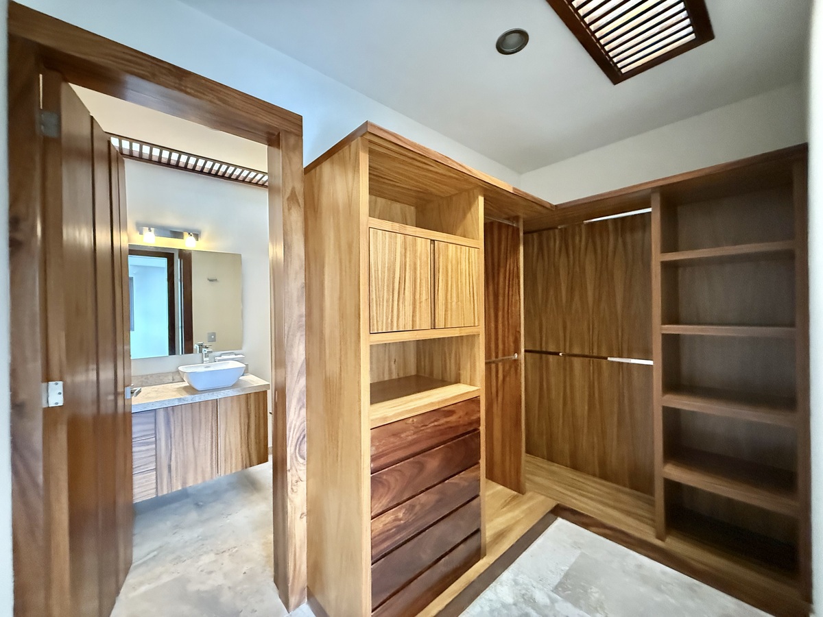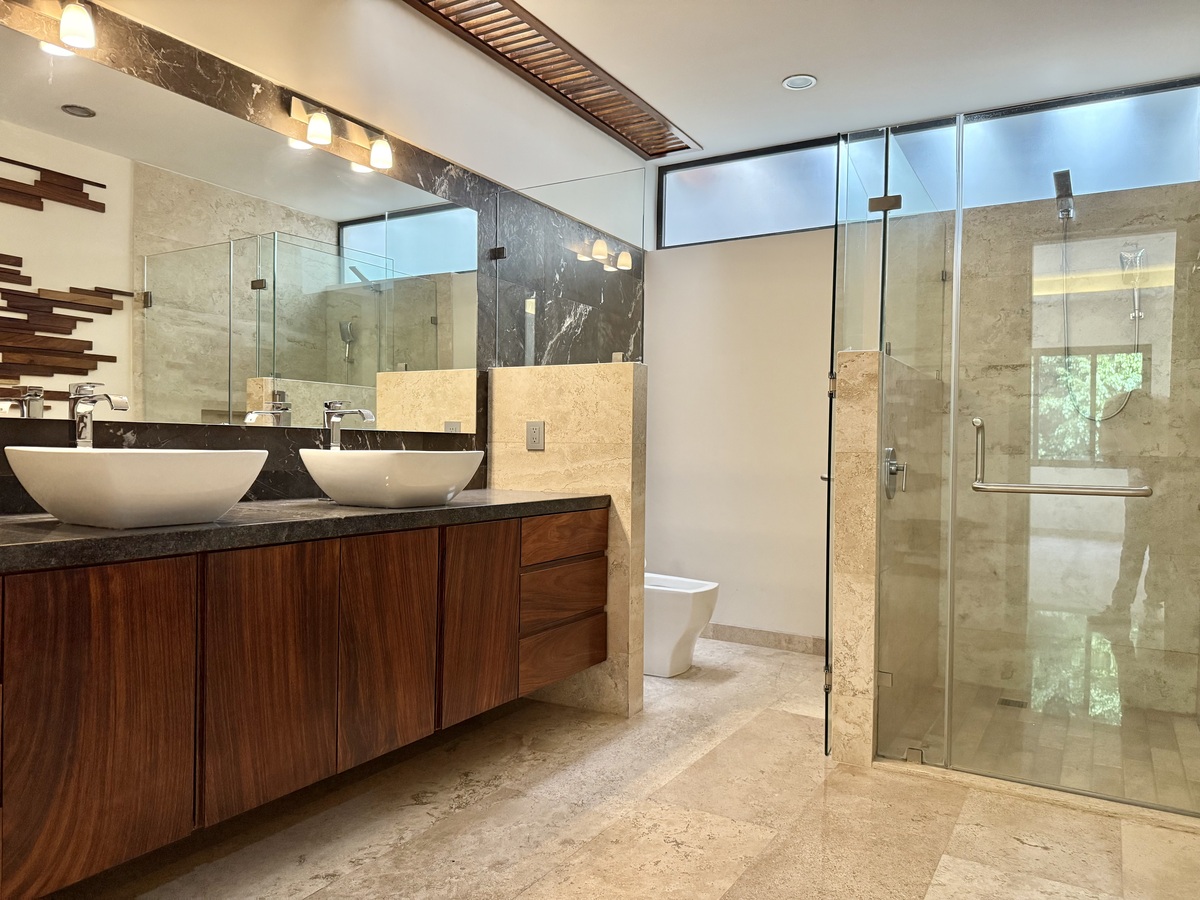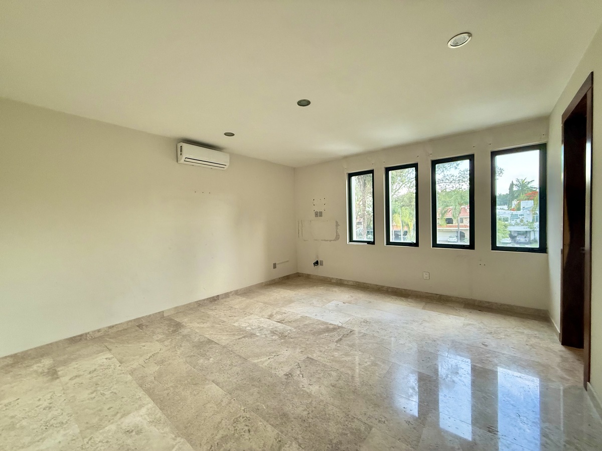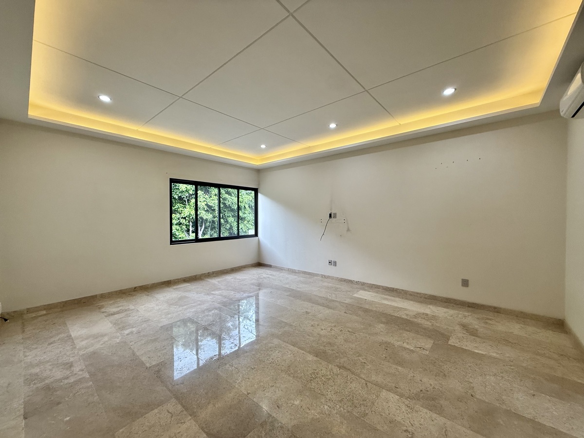 En planta alta cuenta con 4 recámaras cada una con baño y vestidor y un estar de T.V.