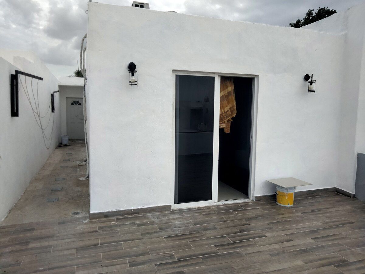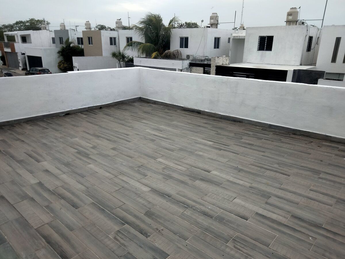 - Cocina vestida con gavetas inferiores y superiores de madera, estufa empotrada, campana extractora, meseta de ganito y tarja con truturador de alimentos