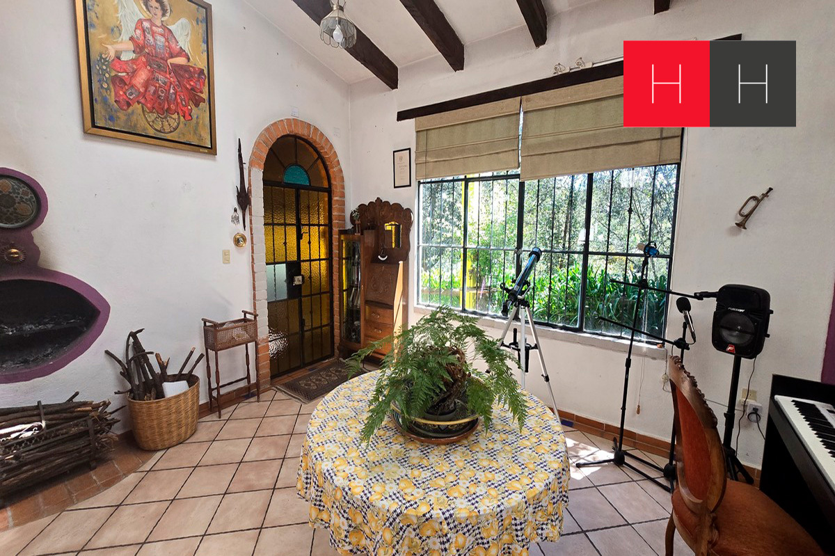 Contemporary rustic Mexican decoration with a lot of charm and good taste and with a fireplace.