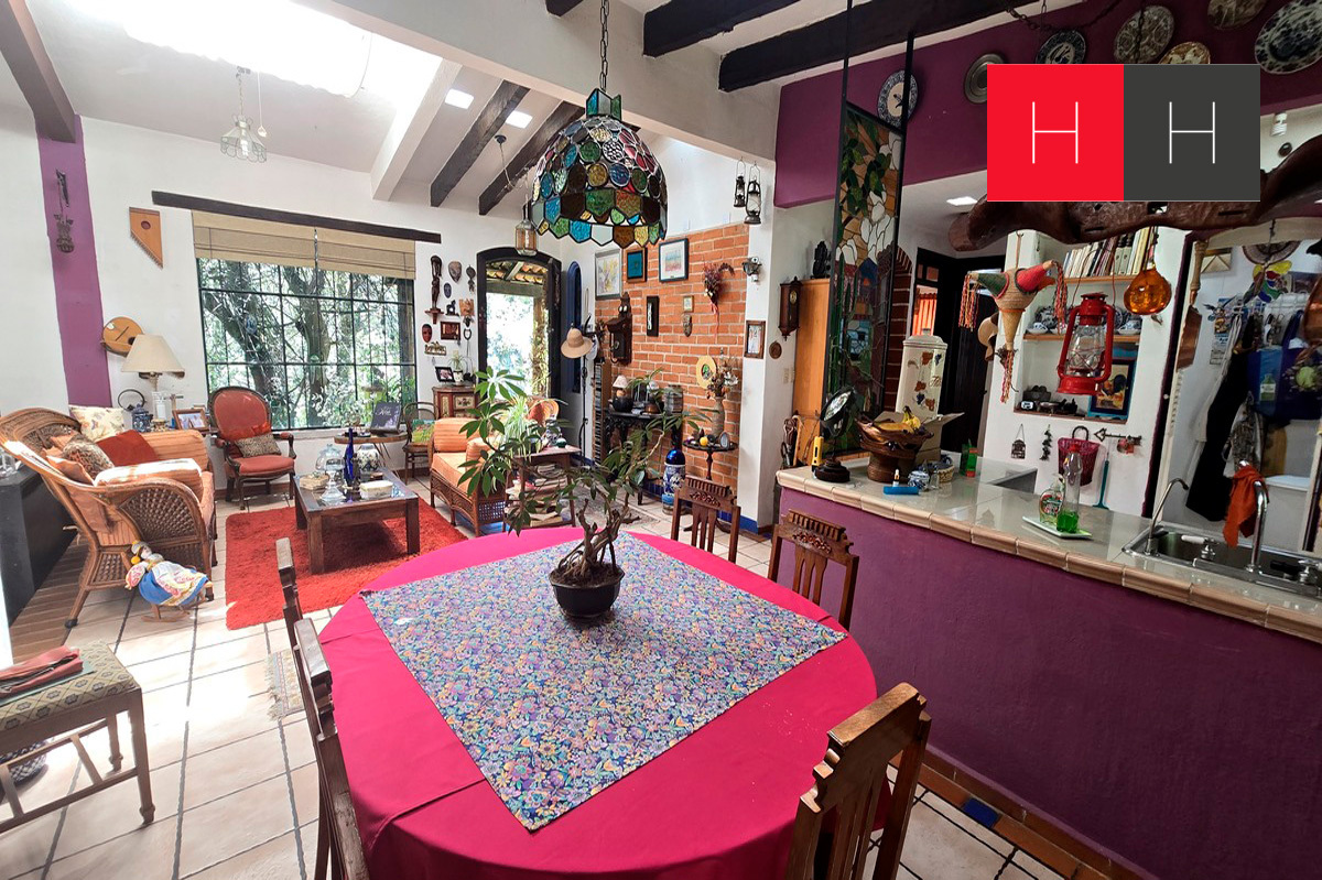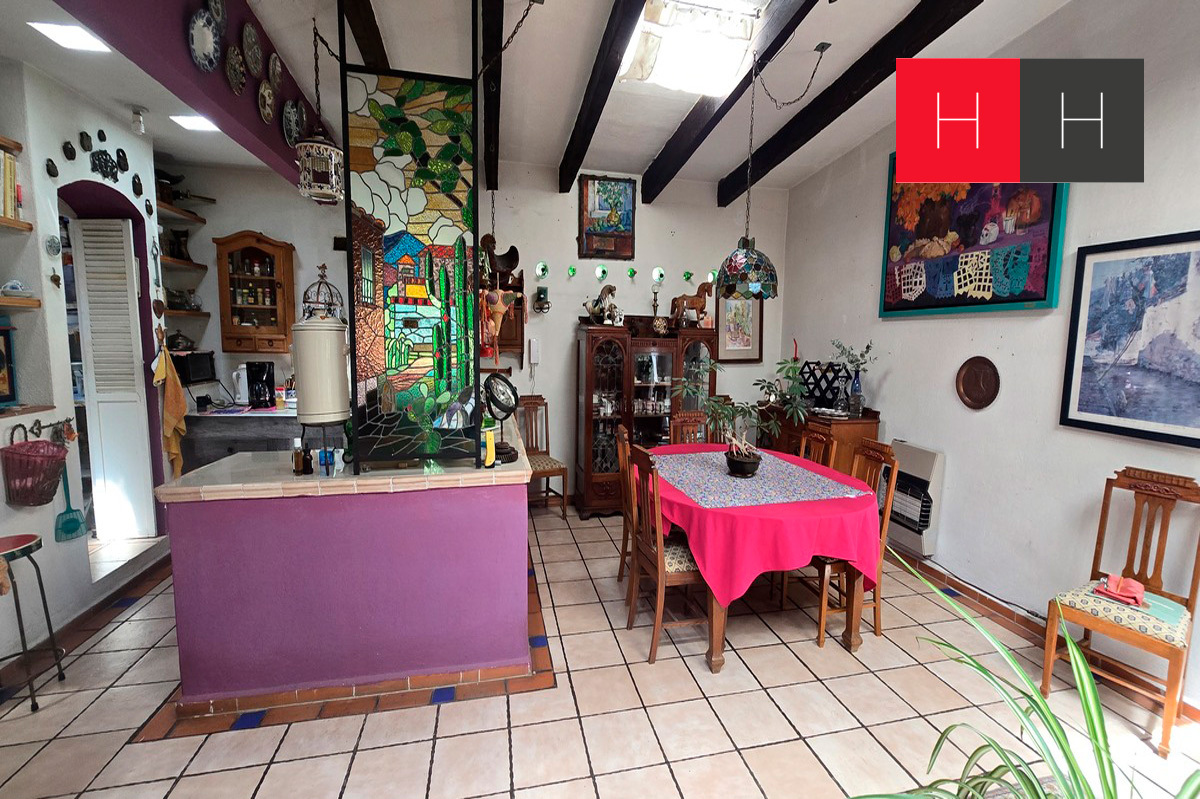 Casa con dos recámaras, sala, comedor, cocina, un baño y estudio con biblioteca
