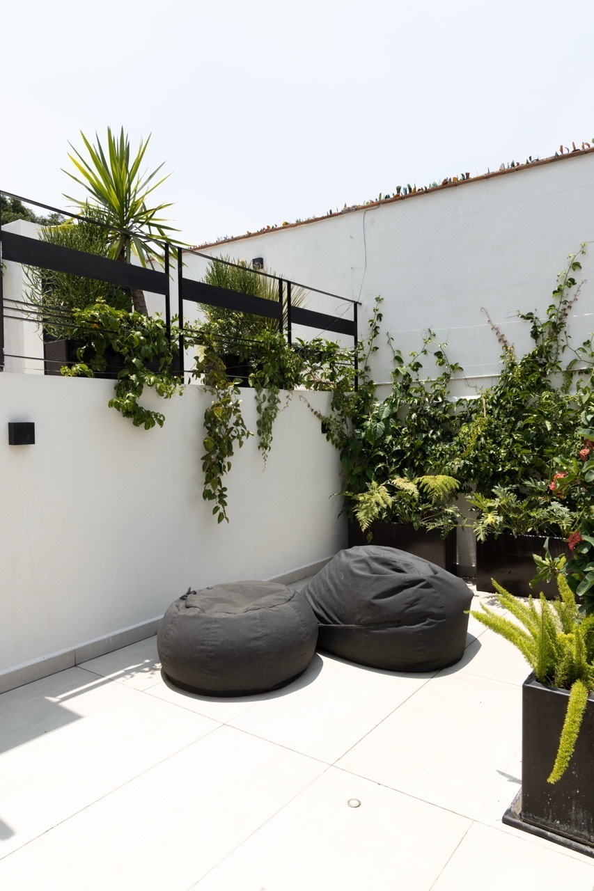 2nd Level: Roof Garden with kitchen and bathroom that can be a study, game room, dining room with bar or multipurpose room with terrace and an uncovered terrace with incredible vegetation.