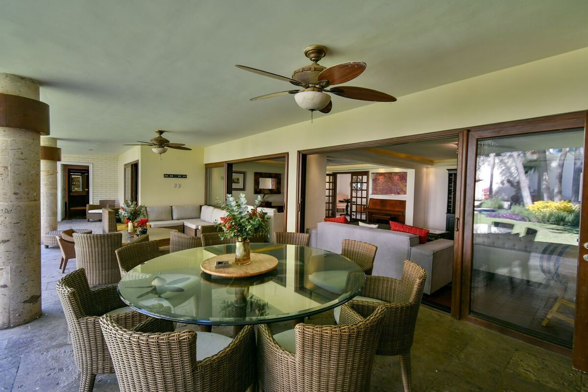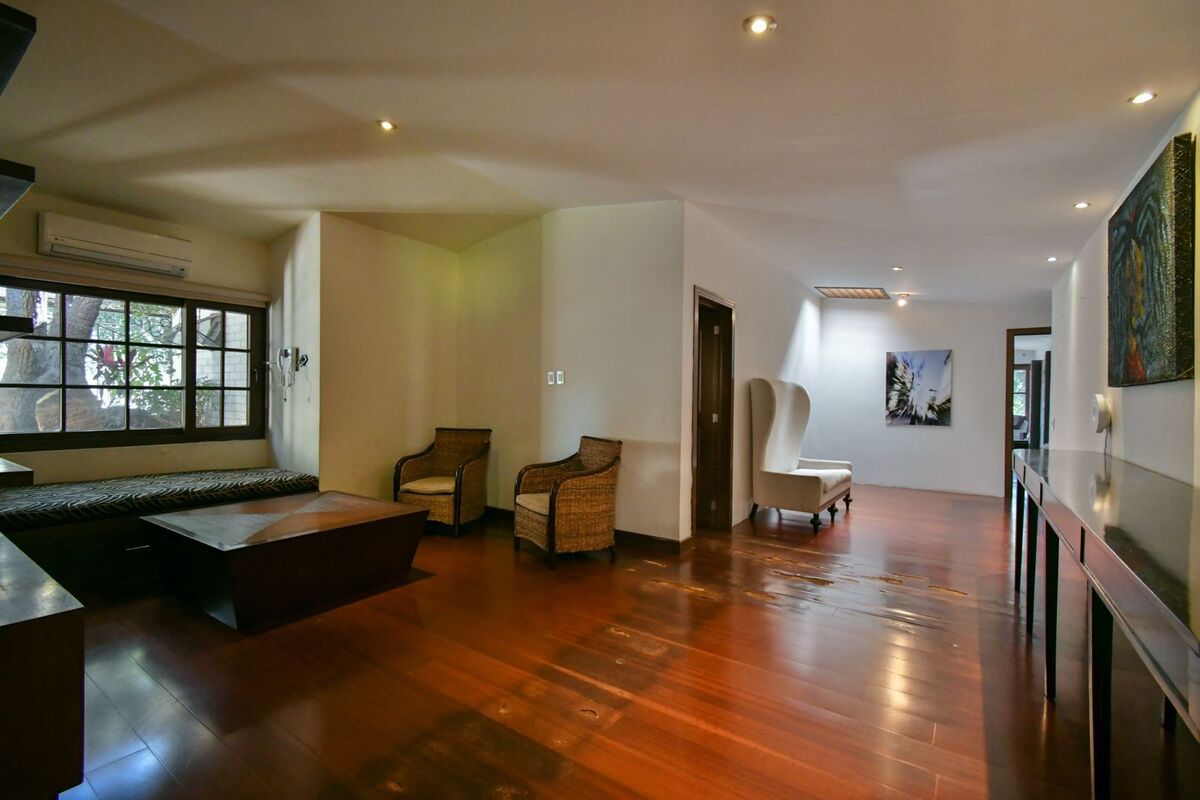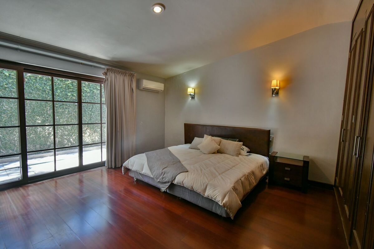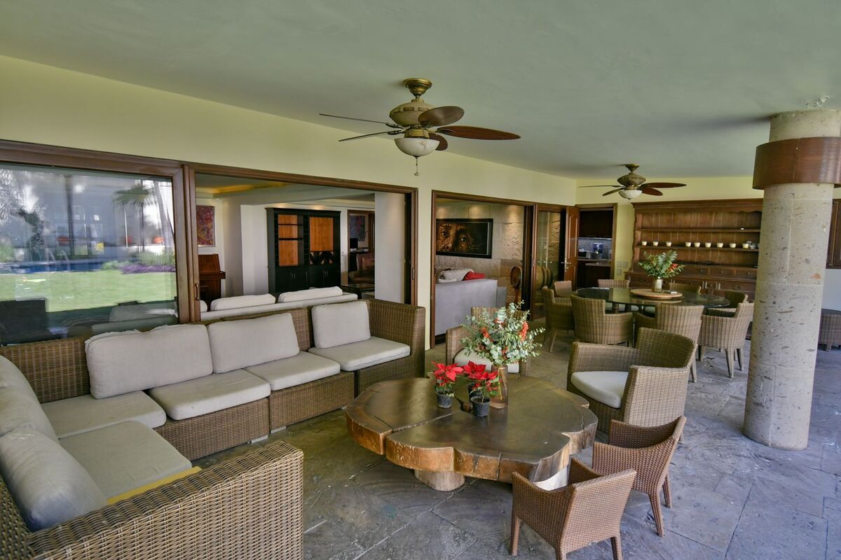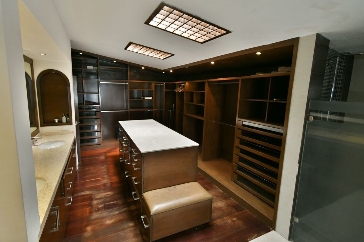En planta baja tiene una amplia cocina con antecomedor cerca del jardín, comedor, sala, tres recámaras con baño completa cada una, estudio, alberca y baño para visitas. Así mismo cuenta con tres recámaras de servicio con un baño completo y cochera para 4 autos con portón eléctrico y ámplias áreas verdes.