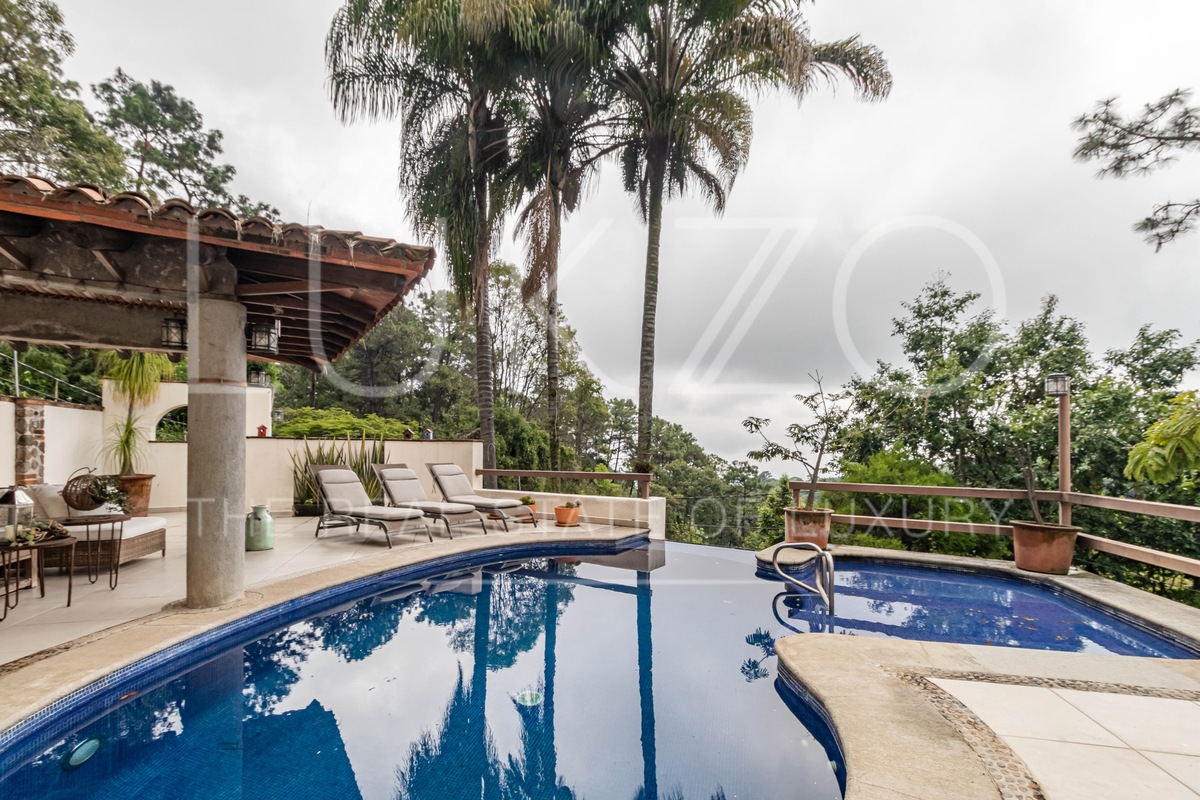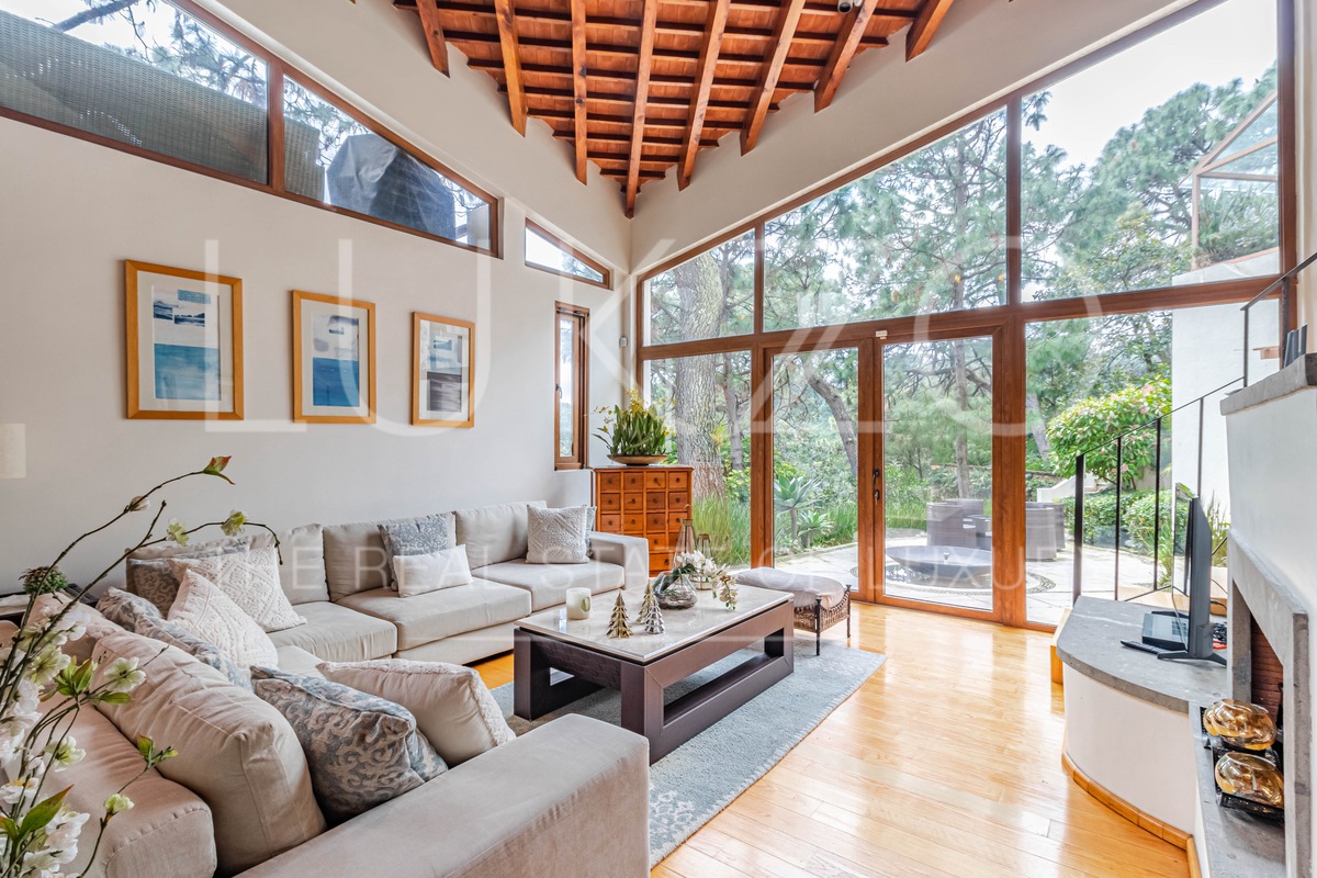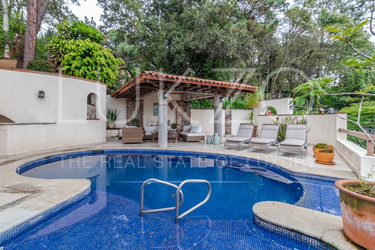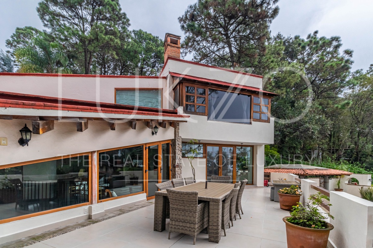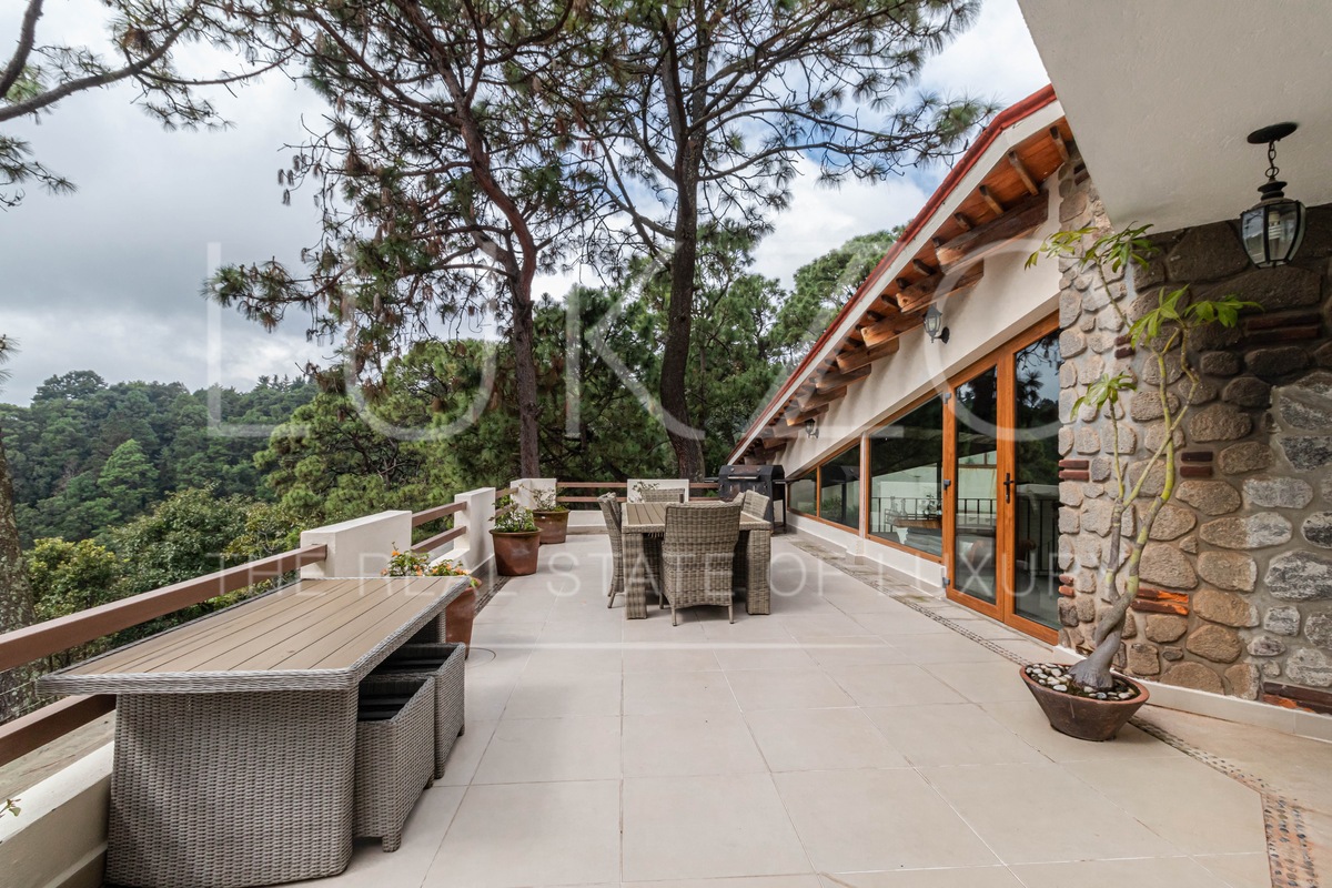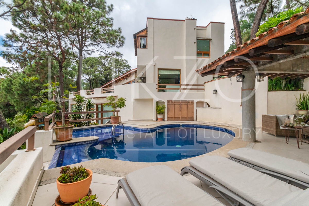Ubicada en medio del bosque, esta residencia de tres niveles ofrece una experiencia de vida envuelta en naturaleza y panoramas incomparables. Sobre un terreno de 1,112 m² y con 520 m² de construcción, la casa combina diseño moderno con armonía natural. Desde sus múltiples terrazas, jardines y espacios abiertos se aprecian vistas espectaculares al entorno boscoso, que brindan tranquilidad, luz y frescura en cada rincón. Con cinco recámaras, cuatro baños y medio, sala, comedor, cocina equipada con barra, cuarto de servicio, bodega y lavandería, está pensada para el confort en familia. Entre sus amenidades destacan alberca climatizada, cisternas profundas, estacionamiento para tres autos y portón eléctrico, todo en perfecto estado de mantenimiento. Es el refugio ideal para quienes desean lujo, privacidad y contacto directo con la naturaleza sin renunciar a comodidades modernas en Cuernavaca.