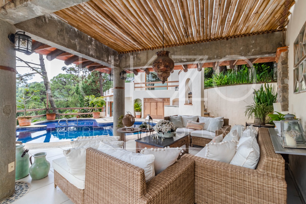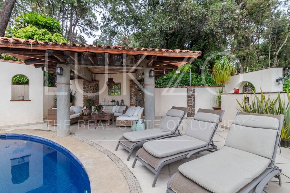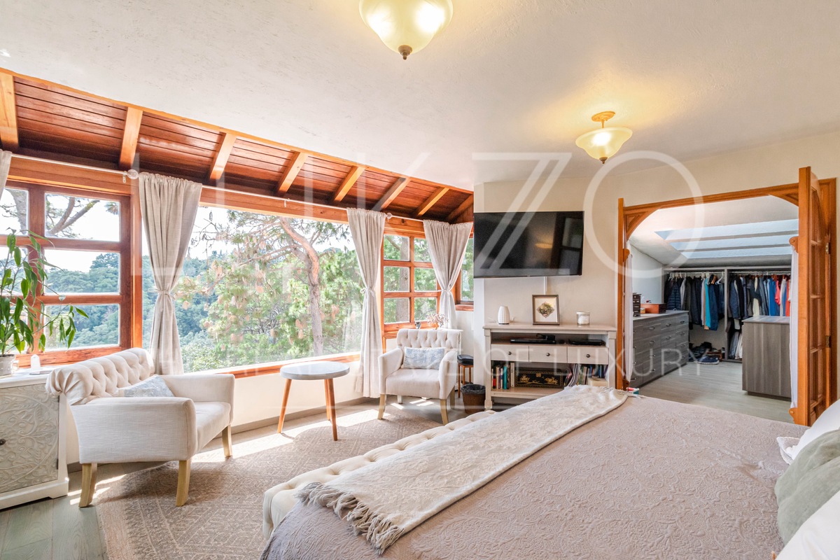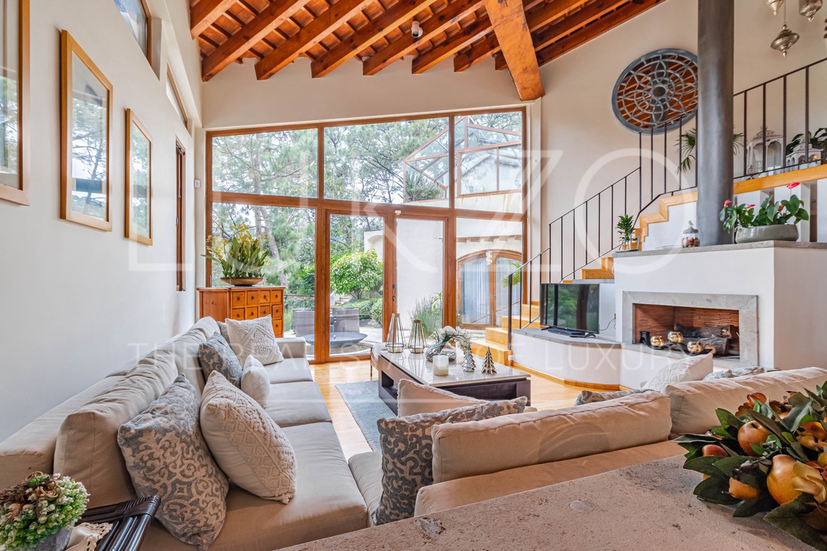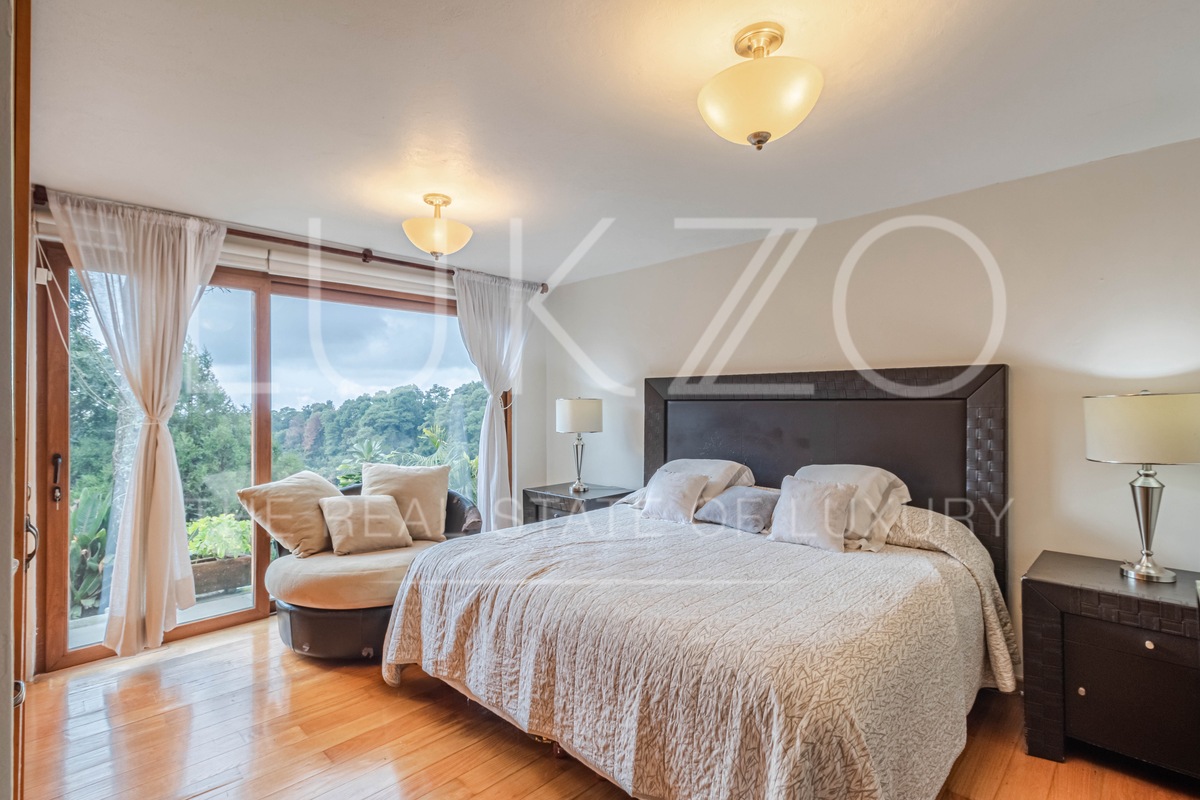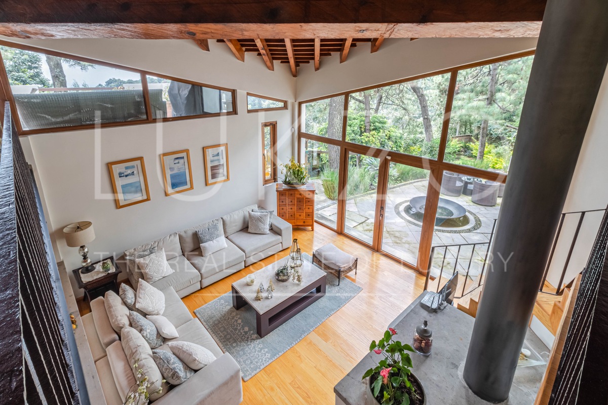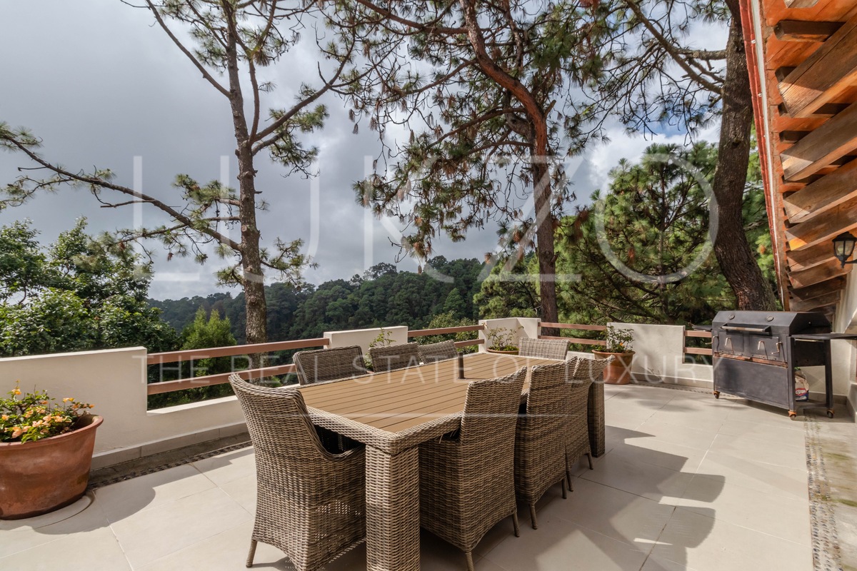 Ubicada en medio del bosque, esta residencia de tres niveles ofrece una experiencia de vida envuelta en naturaleza y panoramas incomparables. Sobre un terreno de 1,112 m² y con 520 m² de construcción, la casa combina diseño moderno con armonía natural. Desde sus múltiples terrazas, jardines y espacios abiertos se aprecian vistas espectaculares al entorno boscoso, que brindan tranquilidad, luz y frescura en cada rincón. Con cinco recámaras, cuatro baños y medio, sala, comedor, cocina equipada con barra, cuarto de servicio, bodega y lavandería, está pensada para el confort en familia. Entre sus amenidades destacan alberca climatizada, cisternas profundas, estacionamiento para tres autos y portón eléctrico, todo en perfecto estado de mantenimiento. Es el refugio ideal para quienes desean lujo, privacidad y contacto directo con la naturaleza sin renunciar a comodidades modernas en Cuernavaca.