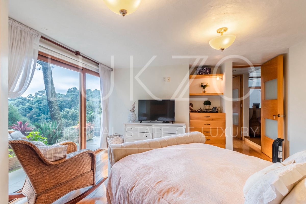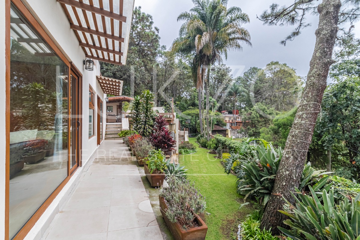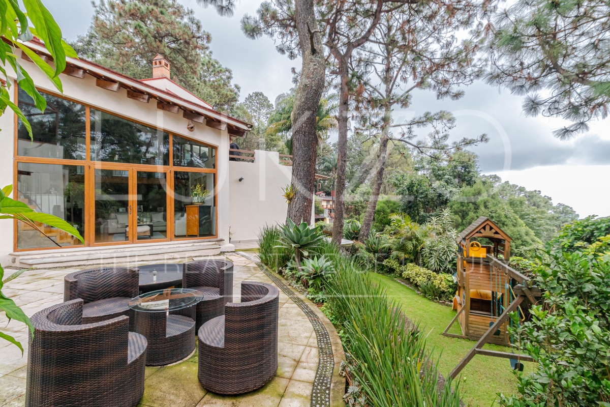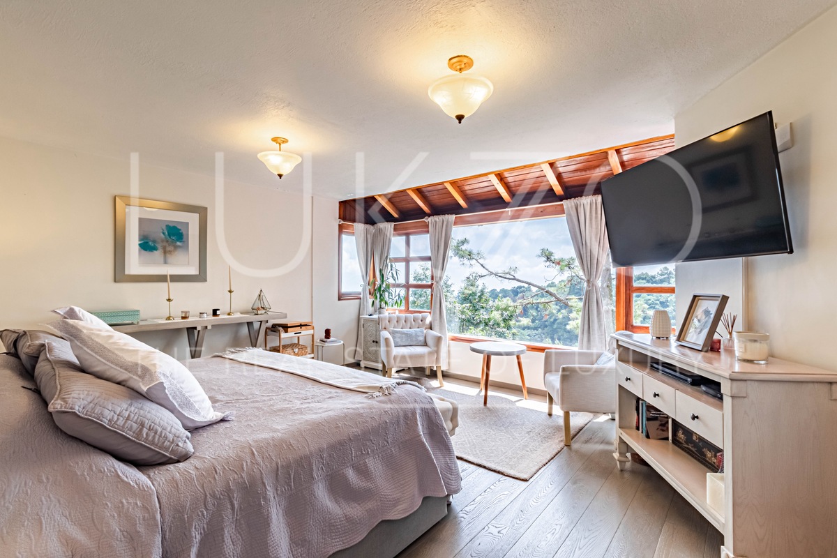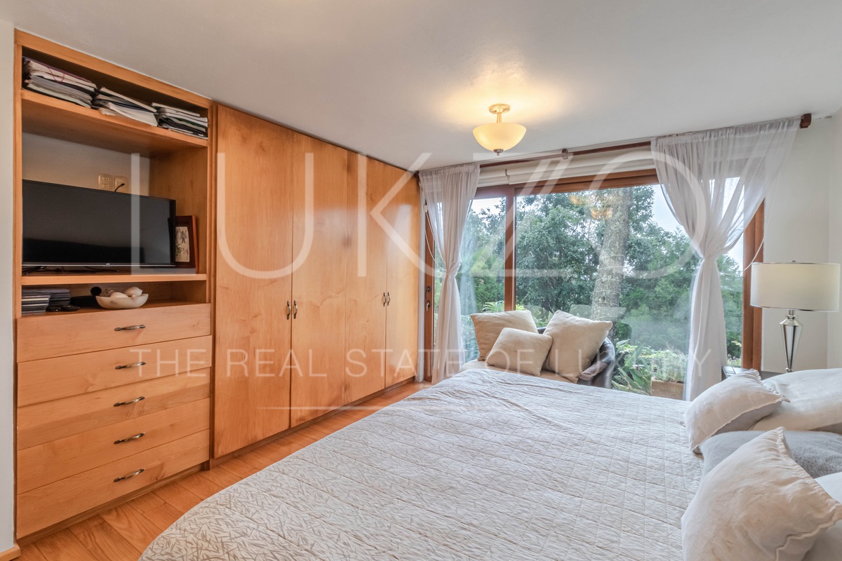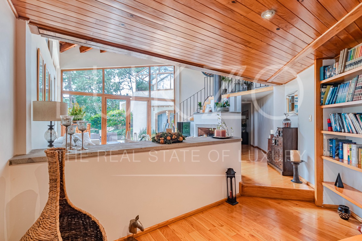 Ubicada en medio del bosque, esta residencia de tres niveles ofrece una experiencia de vida envuelta en naturaleza y panoramas incomparables. Sobre un terreno de 1,112 m² y con 520 m² de construcción, la casa combina diseño moderno con armonía natural. Desde sus múltiples terrazas, jardines y espacios abiertos se aprecian vistas espectaculares al entorno boscoso, que brindan tranquilidad, luz y frescura en cada rincón. Con cinco recámaras, cuatro baños y medio, sala, comedor, cocina equipada con barra, cuarto de servicio, bodega y lavandería, está pensada para el confort en familia. Entre sus amenidades destacan alberca climatizada, cisternas profundas, estacionamiento para tres autos y portón eléctrico, todo en perfecto estado de mantenimiento. Es el refugio ideal para quienes desean lujo, privacidad y contacto directo con la naturaleza sin renunciar a comodidades modernas en Cuernavaca.
