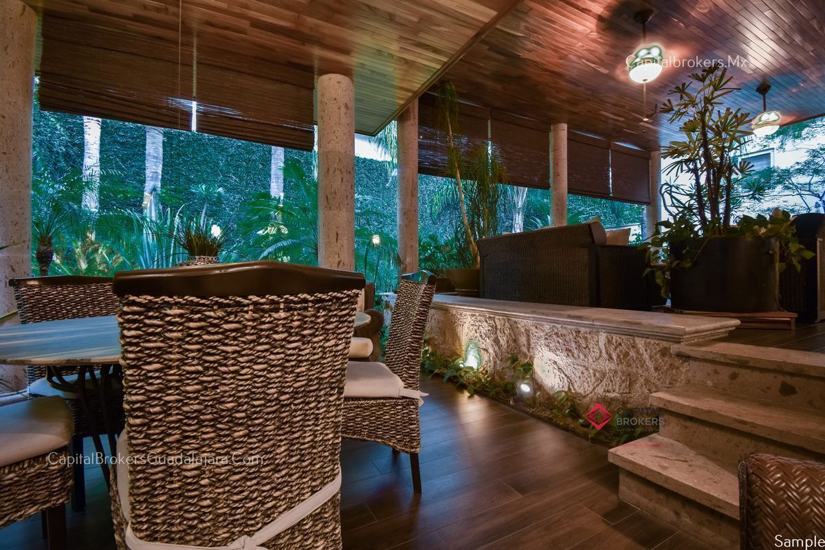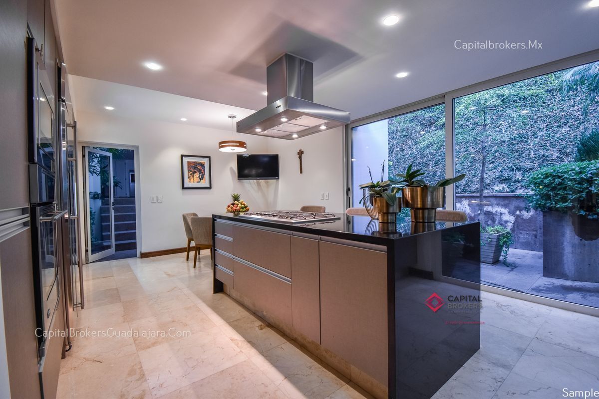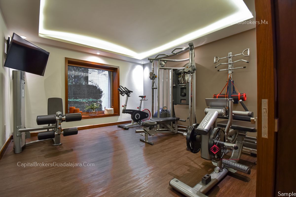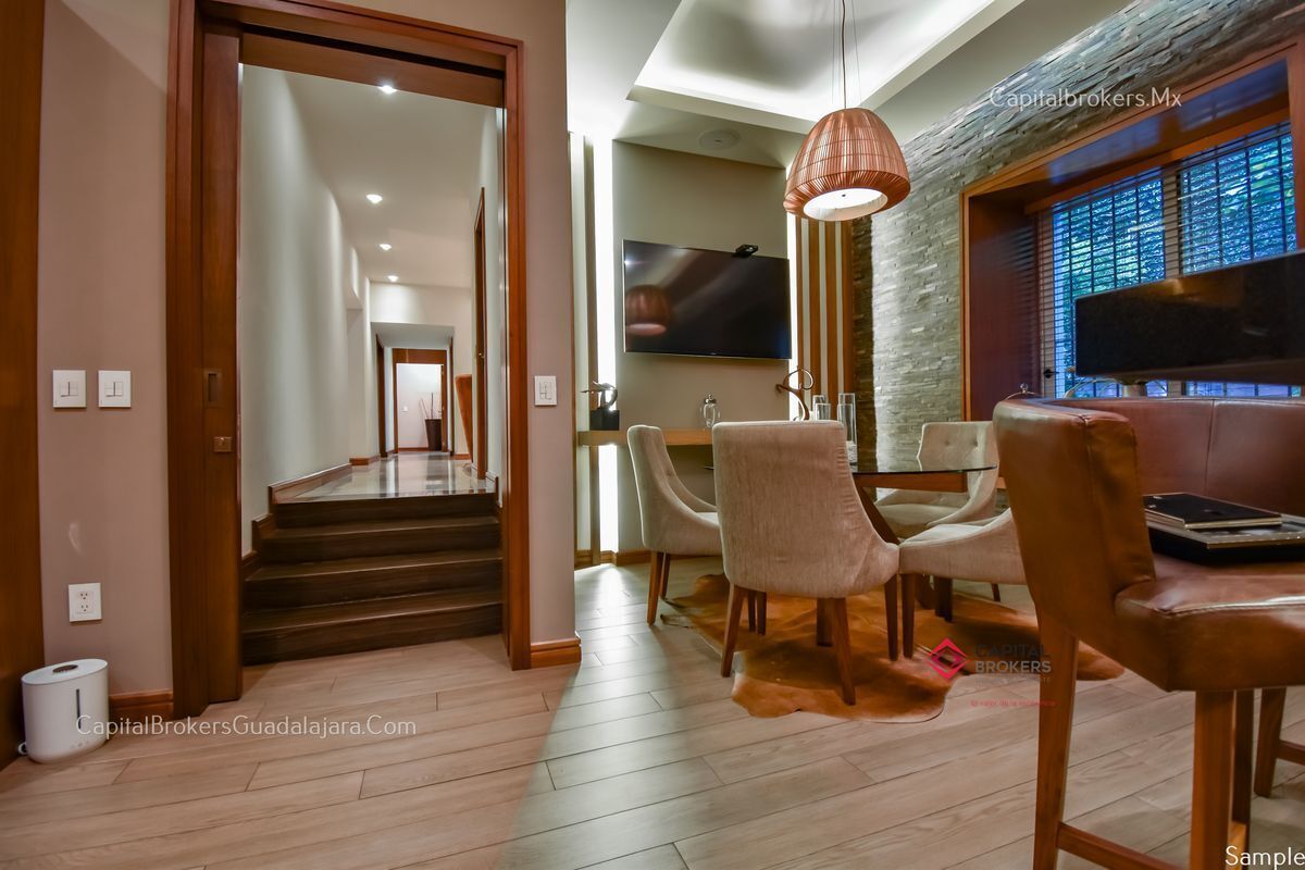 Con muebles empotrados, barra-bar grande de granito e instalaciones para música con entradas para varias bocinas.