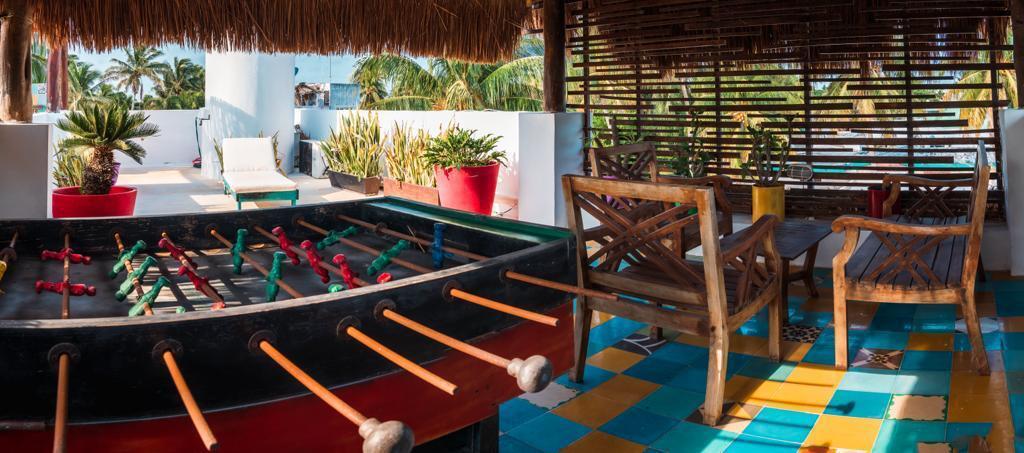 El acceso al roof top desde la planta baja, cuenta con área de palapa y una sala, cada terraza tiene luz y hamaqueros.