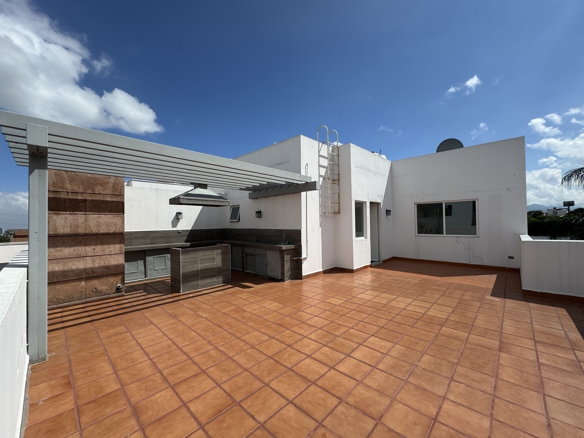 Subiendo a la tercer planta encuentras un baño completo y acceso a la terraza, con muy buena vista, asador y barra, ideal para hacer carne asada. En la parte de adentro de la casa tiene otra área muy amplia a la cual le puedes dar distintos usos, dependiendo de tus necesidades y gustos: puede ser sala de juegos, sala de cine, gimnasio, oficina, o puedes adaptar como otra recámara para huéspedes ya que tiene baño completo
