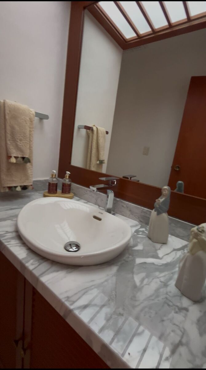 la casa principal cuenta con , sala, comedor, hermosa cocina nueva con isla y barra desayunadora en granito , doble tarja, lavaplatos, area de cafe etc , area de television y jardin zen interior .cuenta dos habitaciones, la principal con vestidor y baño completo con tina y cabina de vapor , la secundaria con closets y baño completo con dos estudios que puede ser otra habitacion, cochera 6 autos ( 3 techados) area de lavado y patio de servicio. y jardin frontal