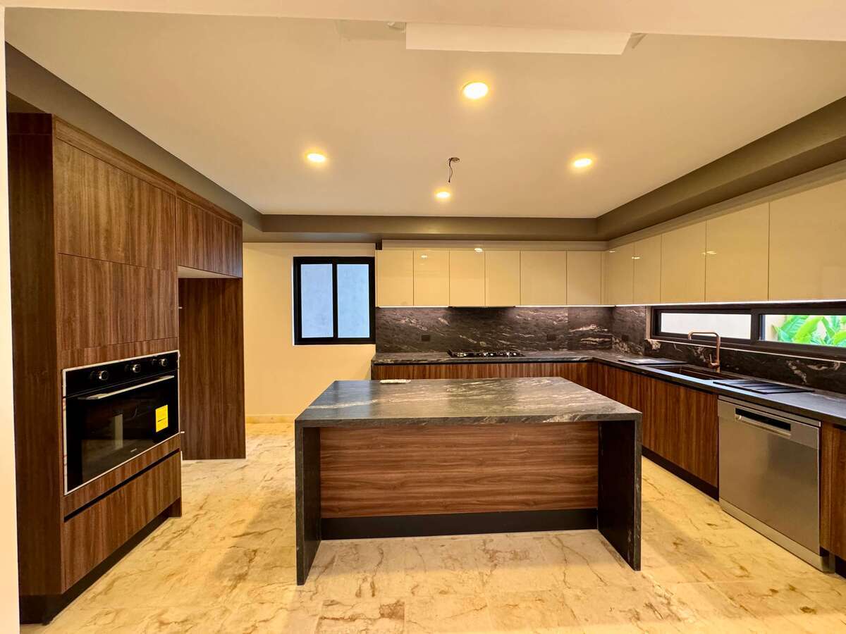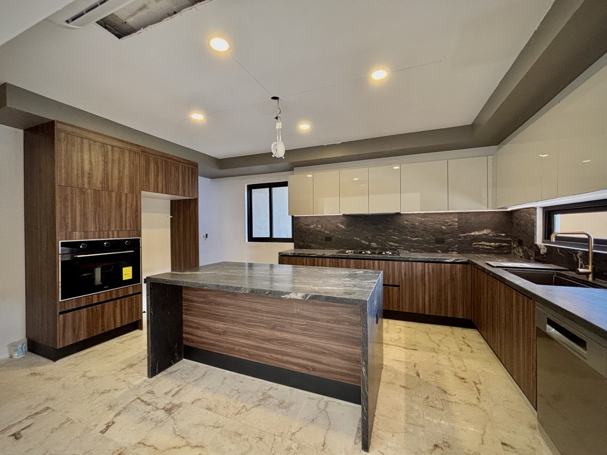 Cocina de Modul Studio equipada con parrilla, campana, hornos, lava vajillas, con costo de $500,000 MN