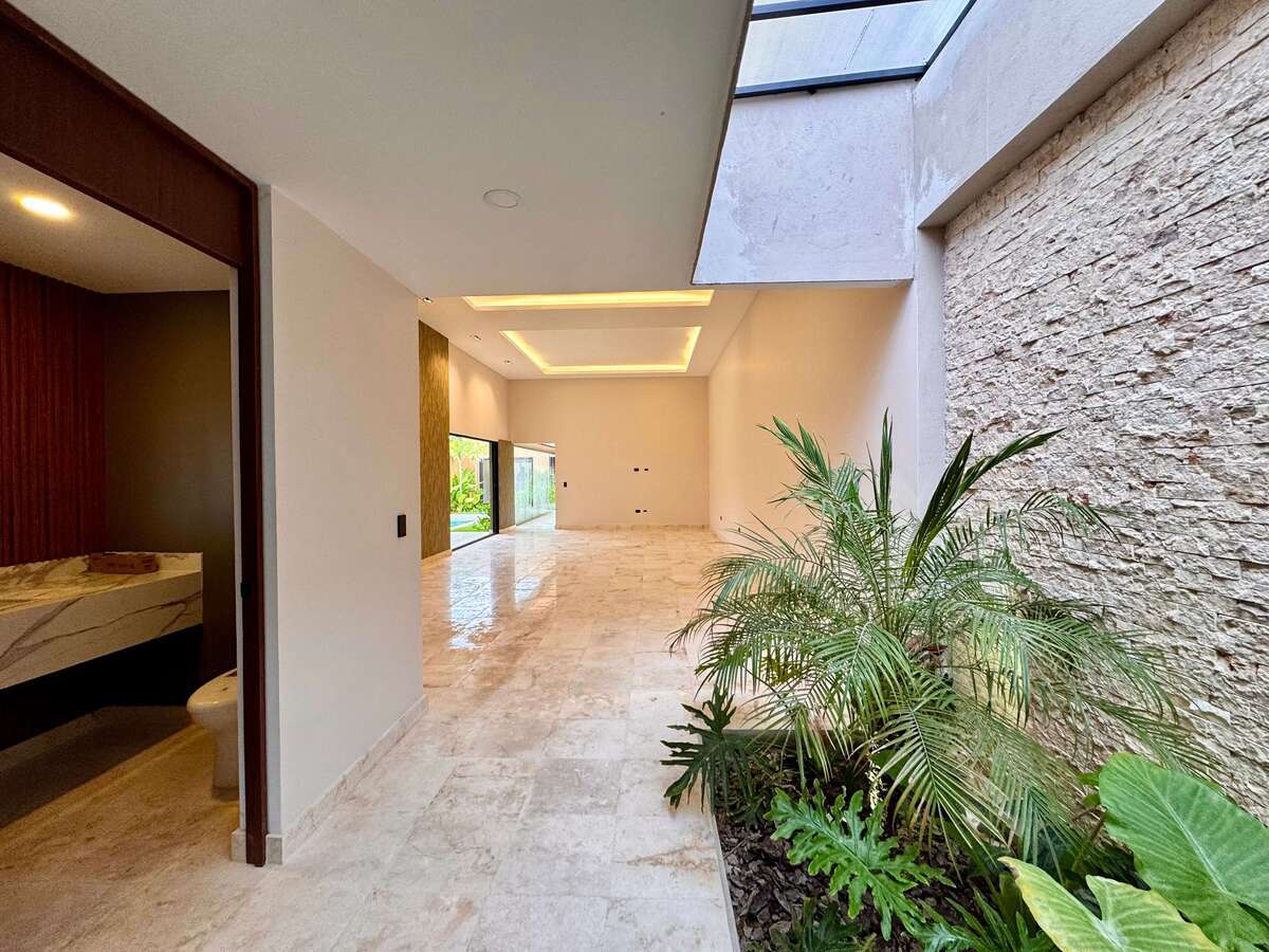 Resalta el paisajismo de su jardín interior como un espacio de meditación y contemplación +una alberca con cascada para relajación y entretenimiento.