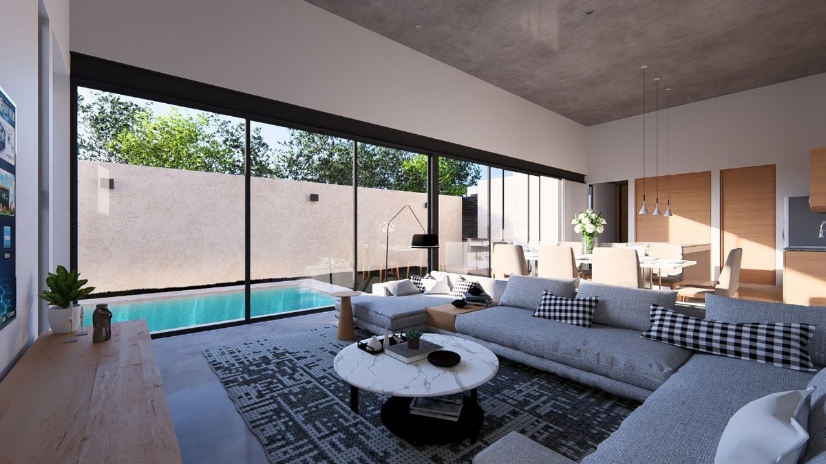 * The images are illustrative, they do not include furniture and decoration.Una privada de 36 lotes residenciales, siendo 18 los que estamos comercializando en esta etapa. Una Privada Residencial a las afueras de la periferia de la Ciudad de Mérida, en el municipio de Conkal, Yucatán. El proyecto arquitectónico es líneas minimalistas. La privada cuenta una caseta de acceso en el centro con un diseño distintivo. El proyecto contempla dos camellones centrales que contienen espacios de recreación (juegos infantiles), estacionamiento para visitantes y áreas verdes con árboles y plantas típicas de la región para amortiguar las altas temperaturas de la península.