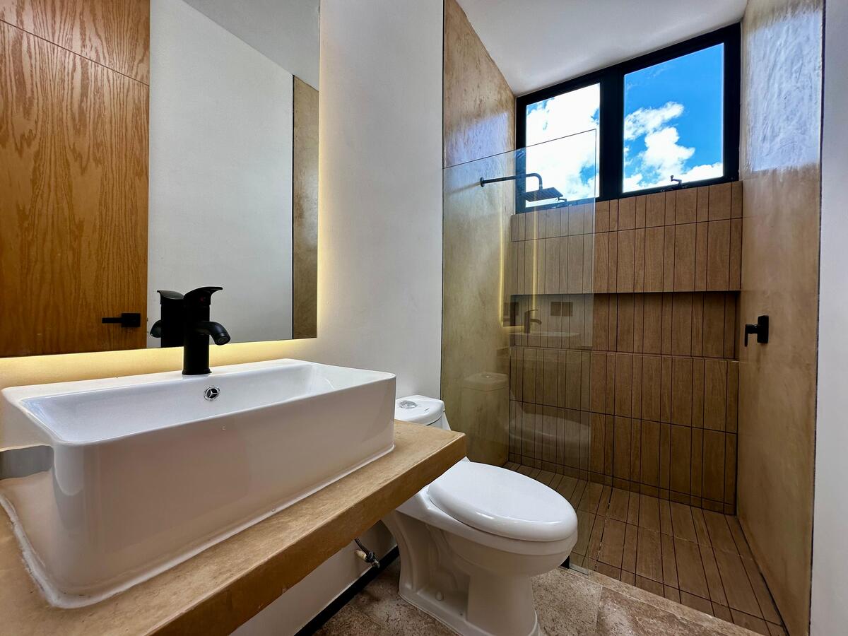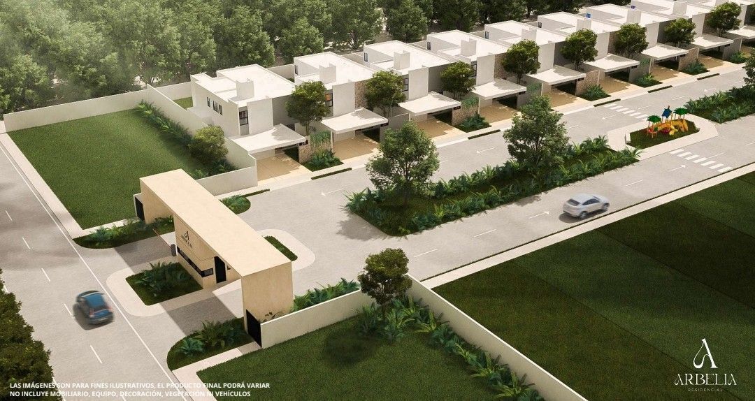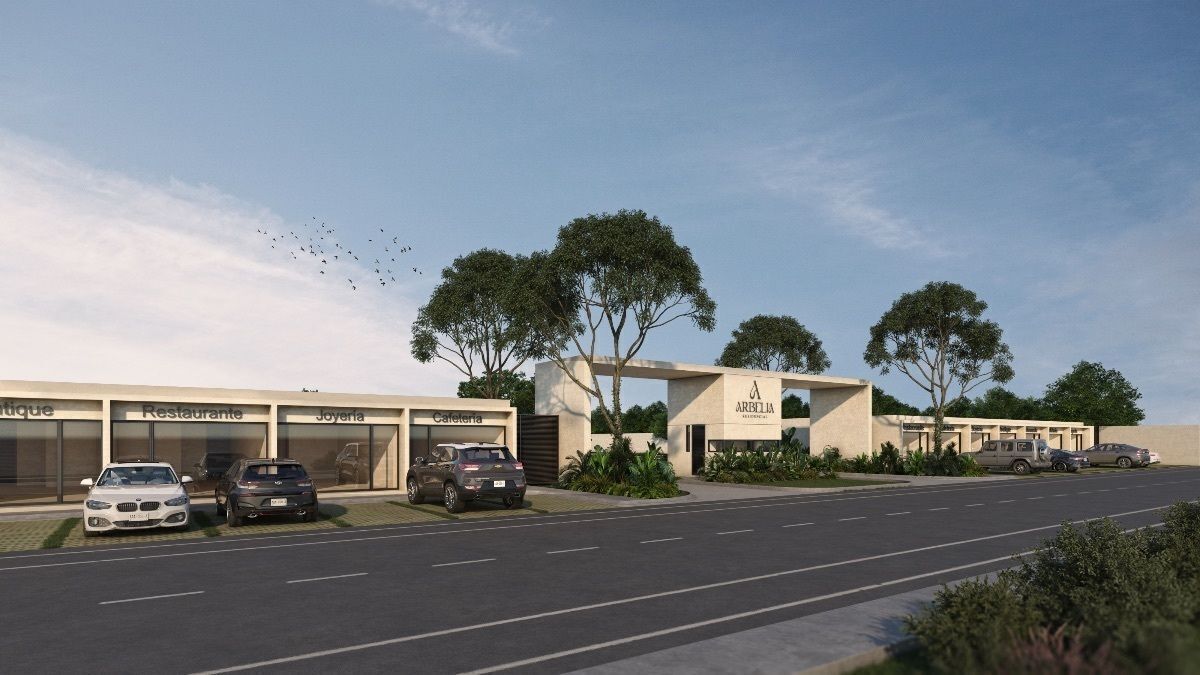 A private community of 36 residential lots, with 18 being marketed in this stage. A Residential Private Community on the outskirts of the city of Mérida, in the municipality of Conkal, Yucatán. The architectural project features minimalist lines. The community has an access booth in the center with a distinctive design. The project includes two central medians that contain recreational spaces (children's playgrounds), parking for visitors, and green areas with trees and plants typical of the region to mitigate the high temperatures of the peninsula.