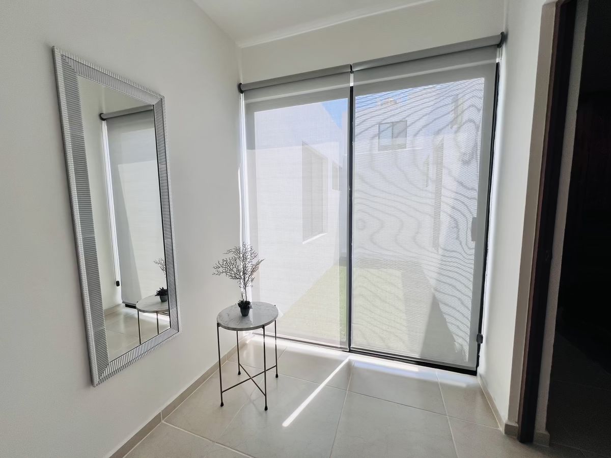 Esta cómoda casa de una planta, te ofrece espacios abiertos, ventilados y con mucha luz, ya que hay ventanales en el área de la cocina, así como también en el área de la estancia y que a la vez conectan con el área de la alberca. Además se vende completamente amueblada y equipada, sólo para que traigas tu ropa y cosas personales.