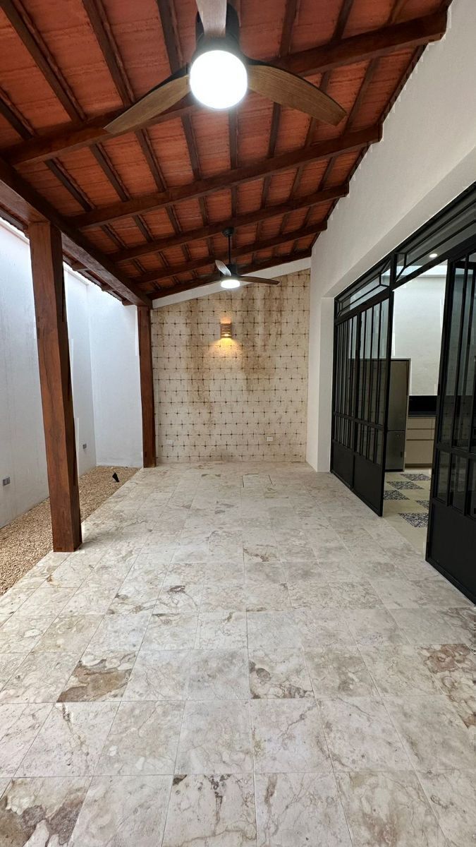 Completely restored facade, main access doors and windows in cedar with wrought iron, polished mosaic floor decorated in blue tones that gives a spectacular view upon entering the property. Kitchen with island and black granite bar, complete carpentry, refrigerator and stove, hood and dishwasher included. It has covered parking with electric gate and a storage area in it, laundry room equipped with washer and dryer, complete carpentry in closets and bathrooms, air conditioning in the rooms, fans on the terrace and common areas, pool with chukum finish, Helvex brand faucets.