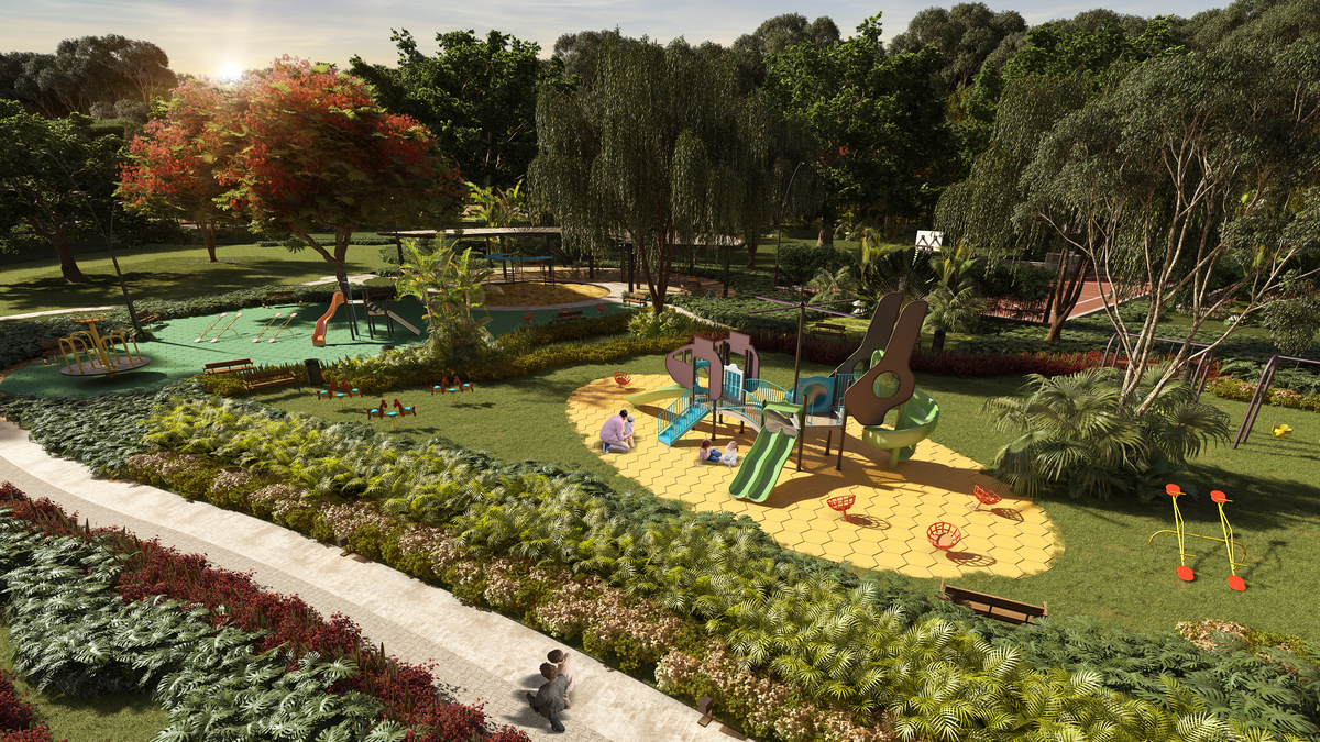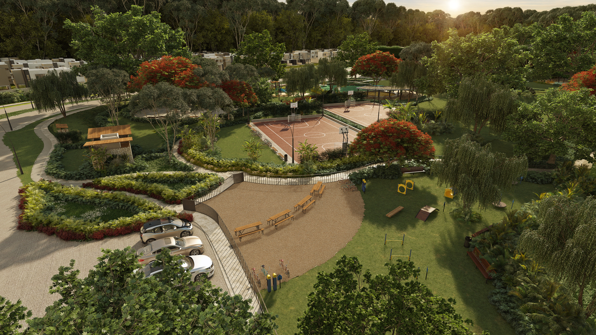 Es una comunidad residencial de casas, lotes y departamentos que se extiende sobre un terreno de 35 hectáreas totalmente bardeadas y con pórtico de control de acceso.