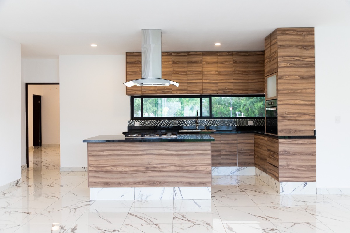 • Cocina equipada con barra de granito, campana, horno y alacenas