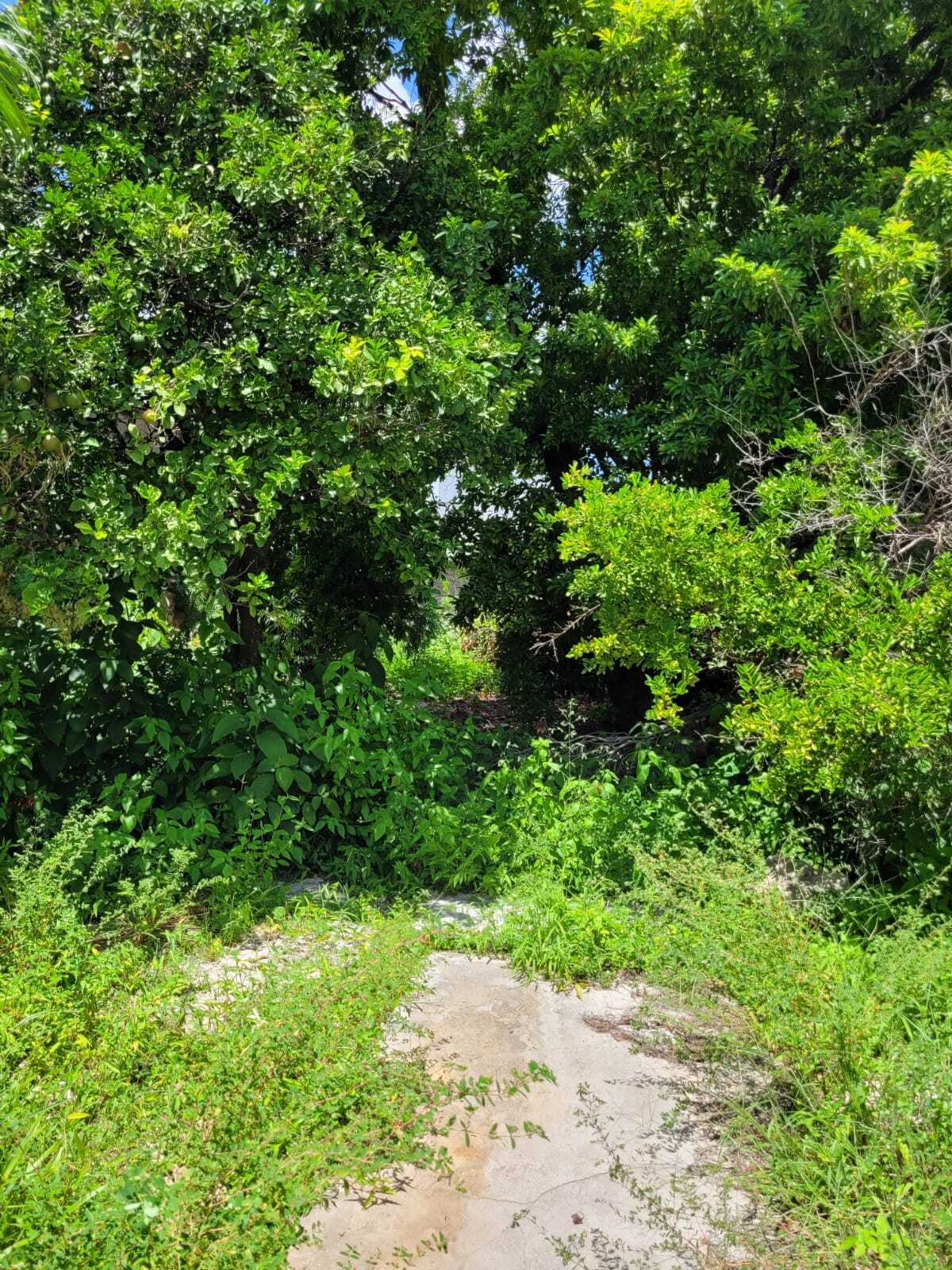 Patio trasero arbolado, ofreciendo un entorno agradable y fresco