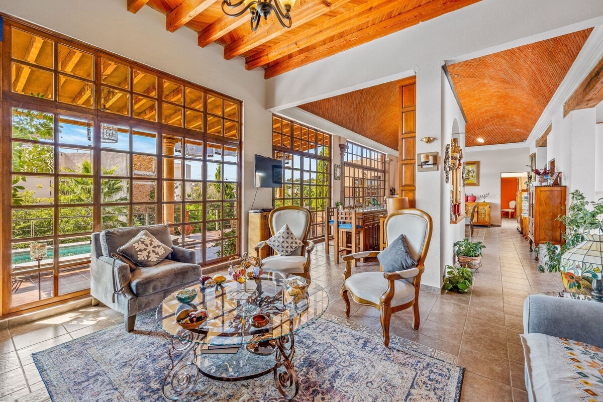 Discover a serene retreat in San Miguel de Allende with this impressive 6-bedroom property, located within the peaceful and established Villas de los Frailes neighborhood. This expansive estate features a four-bedroom main residence complemented by an independent two-bedroom casita, offering spacious living and versatile options for a discerning owner.