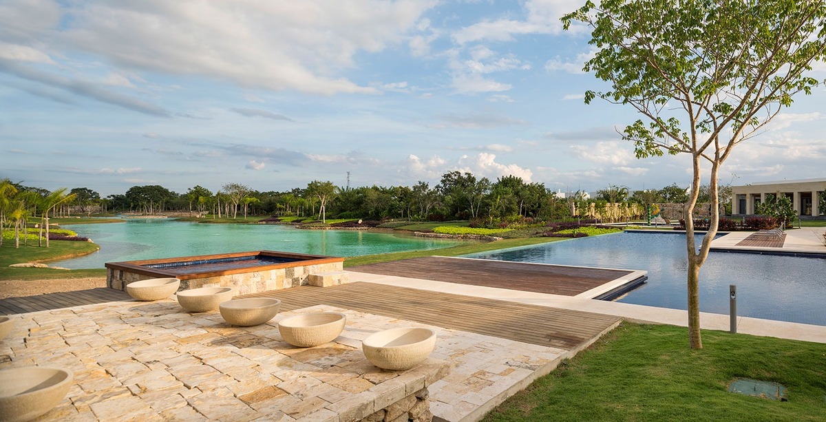 - grandes piscinas con vista al lago central