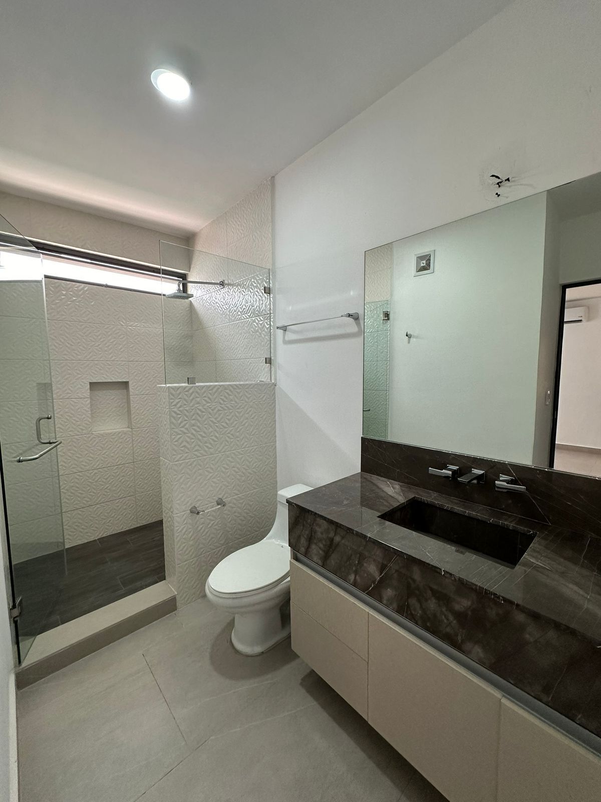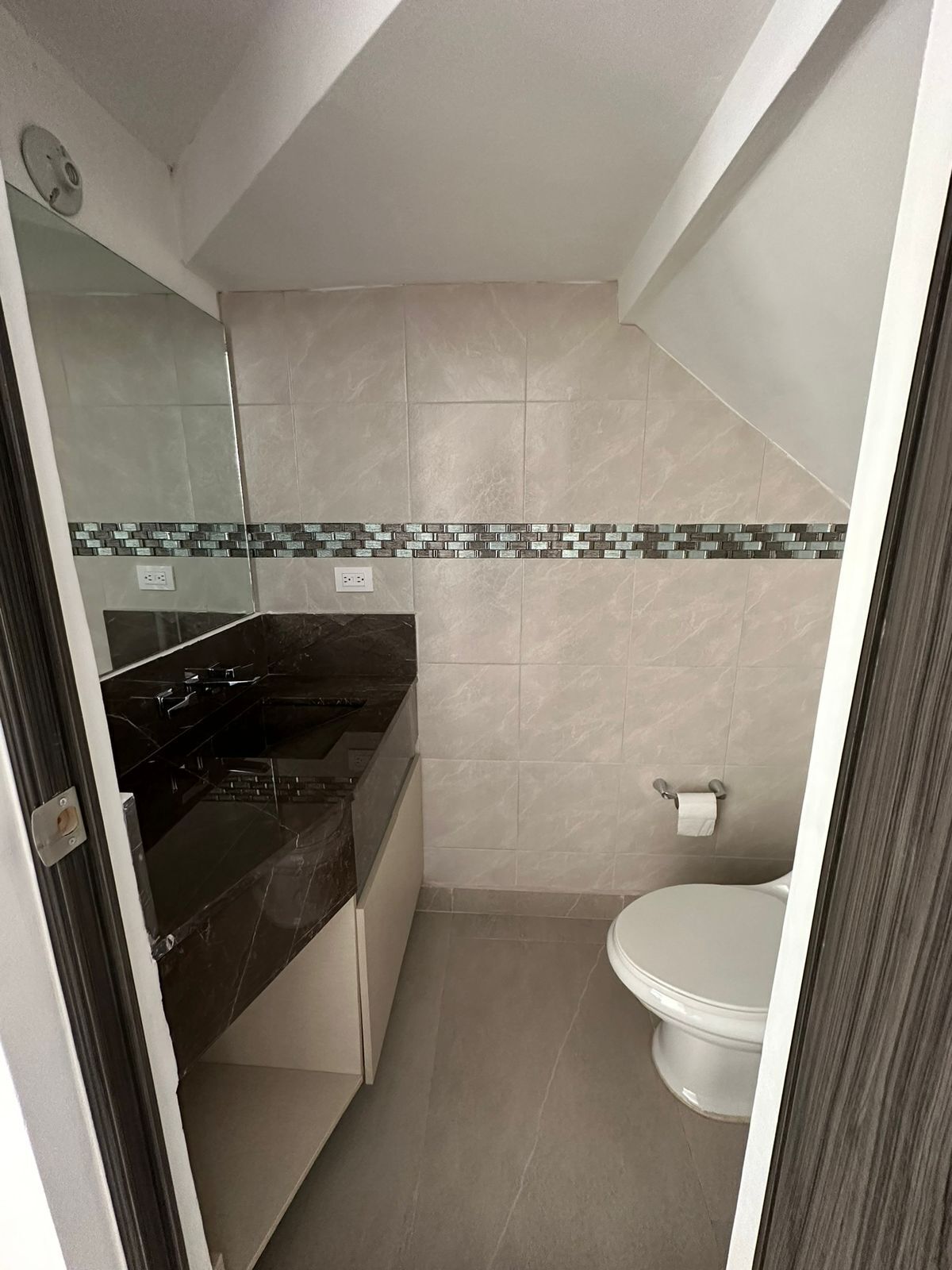 - Medio baño con lavabo de granito.