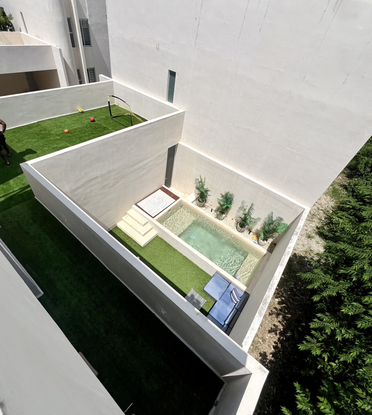 La privada cuenta con portón eléctrico, área de basura y iluminación exterior.