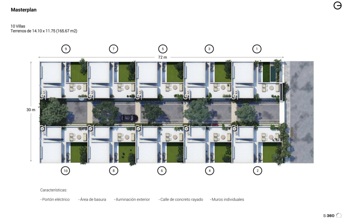 La privada cuenta con portón eléctrico, área de basura y iluminación exterior.