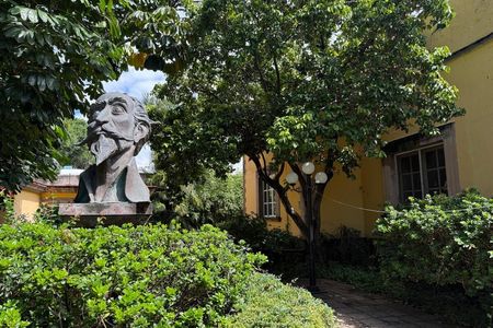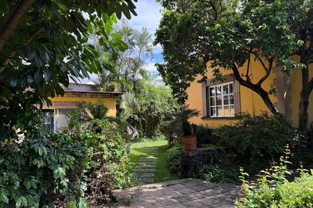 - Jardín extenso con árboles cítricos y abundante vegetación