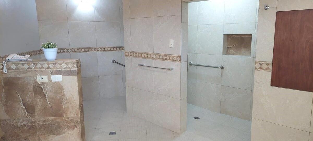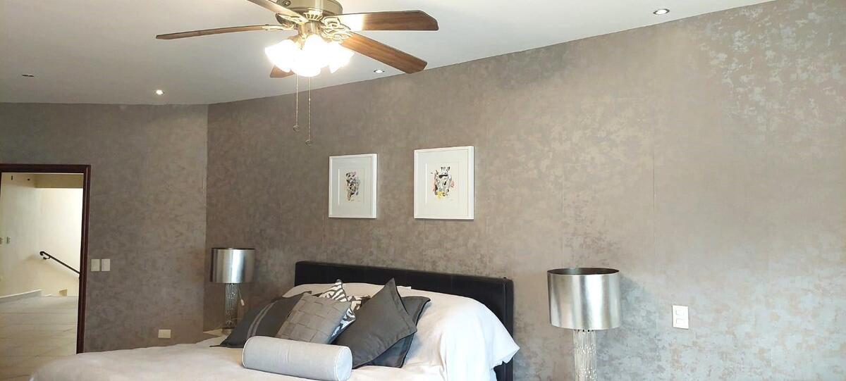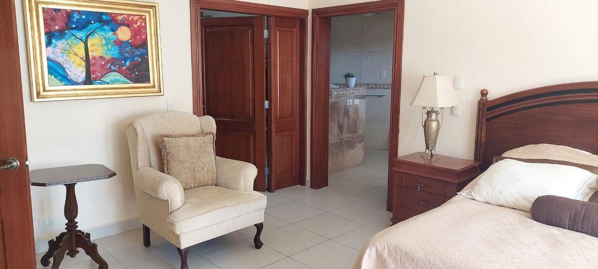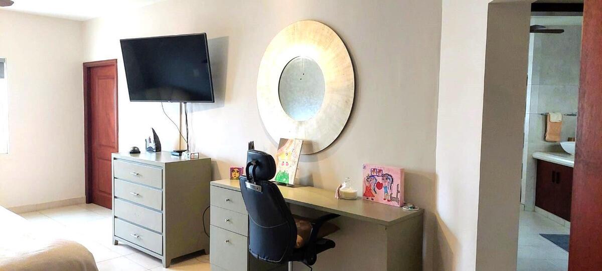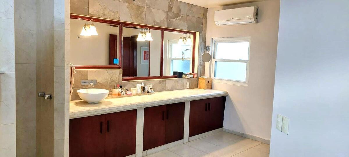 4 recamaras amplias cada una con cuarto vestidor, abanicos de techo y minisplits, baño completo con extractor