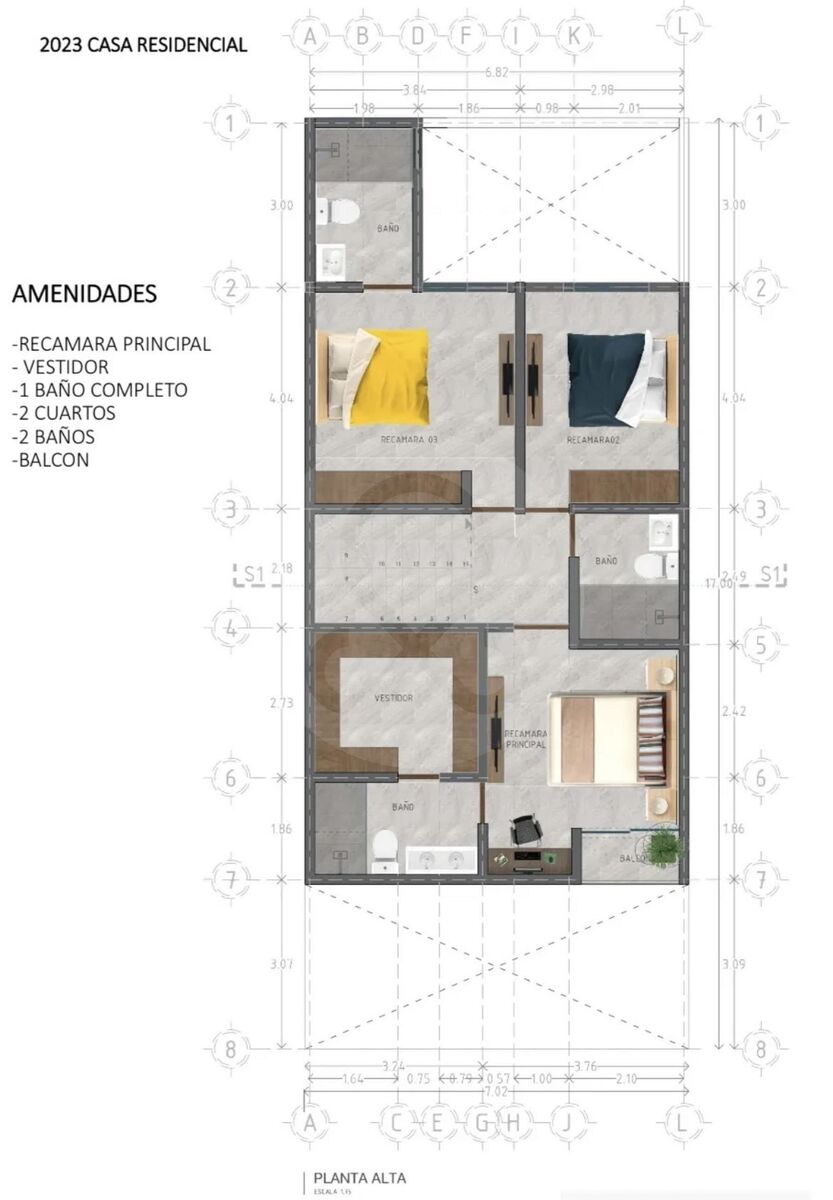 Recámara principal con baño completo y Walk Inn clóset, Segunda recámara con baño completo y tercer recamara con baño completo exterior.