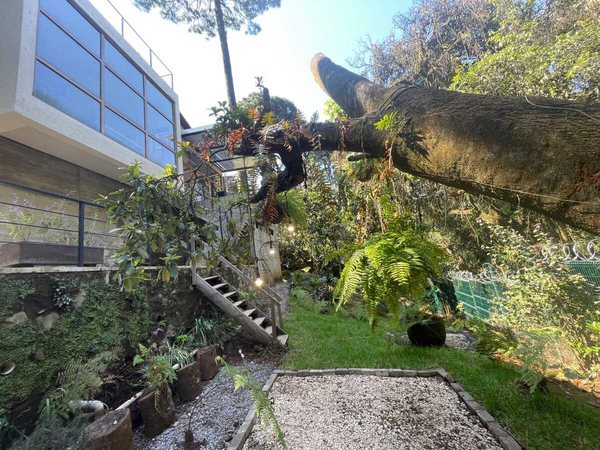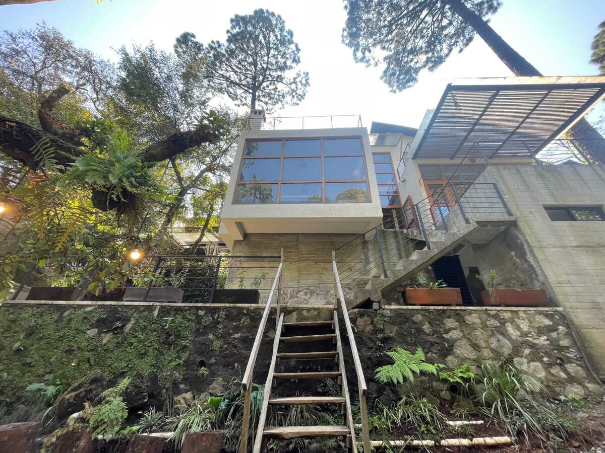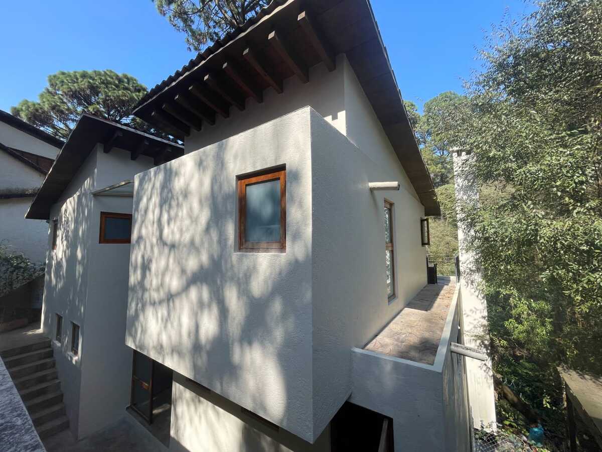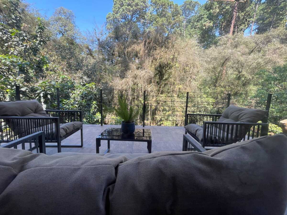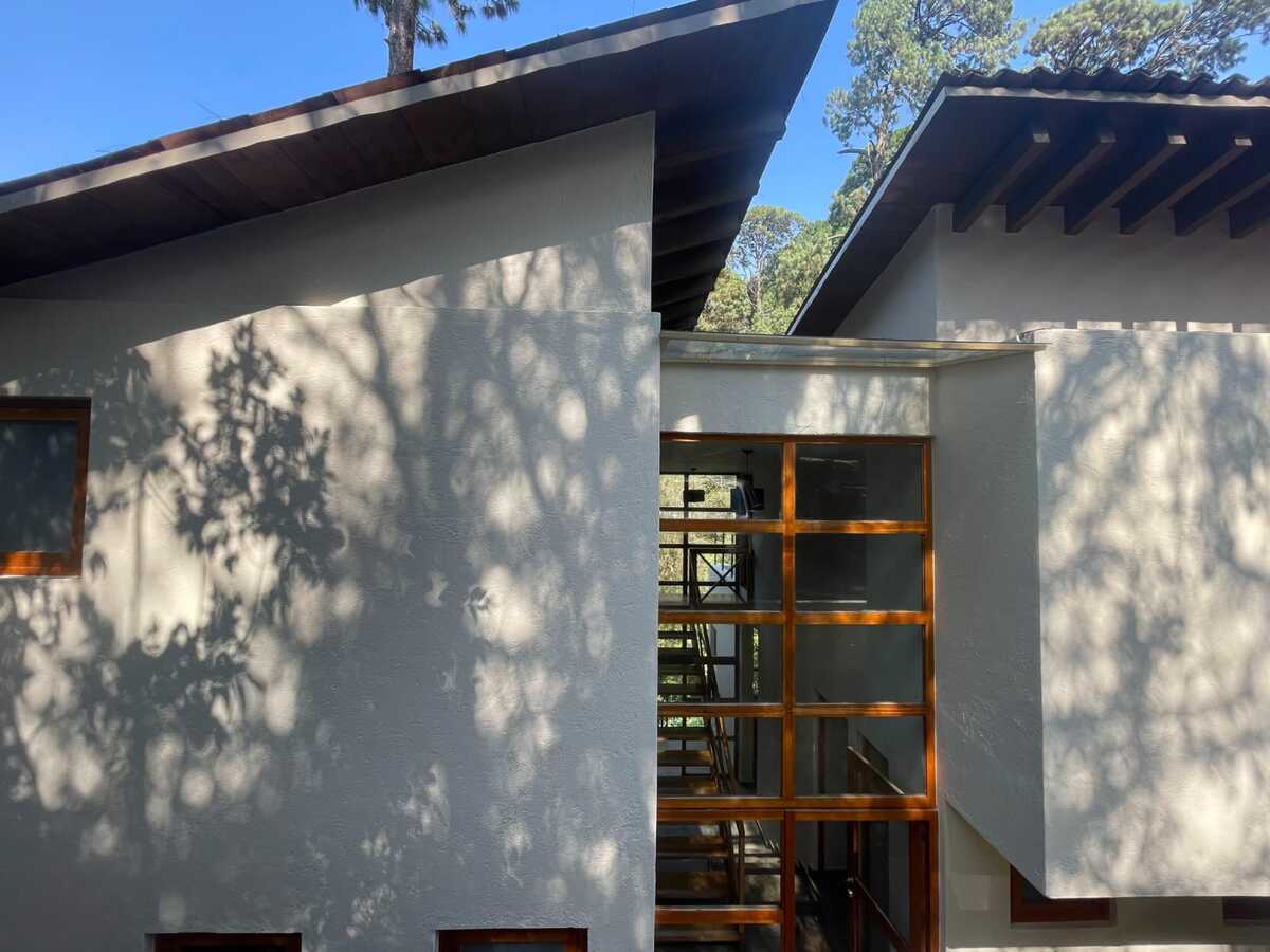 Una casa donde impera el sonido del río. Privada de pocas casas , a pasos de la zona comercial de Avándaro y con seguridad 24/7. Es la casa más privada de todas. Tienes unos ventanales desde toda la casa para que siempre mires la vegetación como en una postal que, junto con el río, te transportan y relajan. Y a eso vienes a Valle de Bravo. A respirar mejor, sentir diferente y si amas el agua helada, meterte al río que casi es privado para ti.
