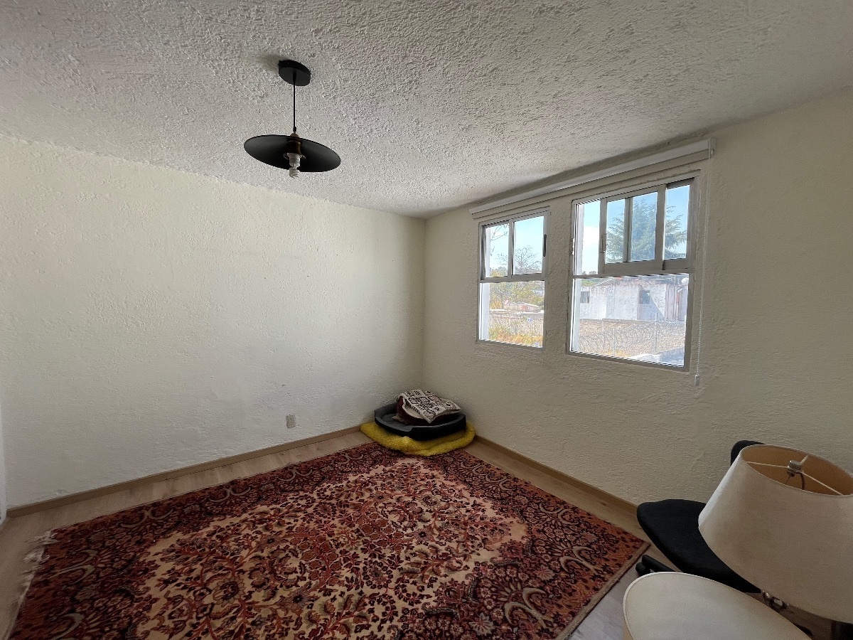 En dos niveles cuenta con 3 recámaras , 2.5 baños, estancia con salida a patio muy grande que pudiera ser jardín, estudio, comedor cocina integral cuarto de lavado y cuarto de servicio. El conjunto cuenta con jardín común. Muy silenciosa e iluminada. Se acaban de cambiar pisos y aplanar muros por lo que está en muy buen estado. No dejes de verla ! Excelente ubicación.