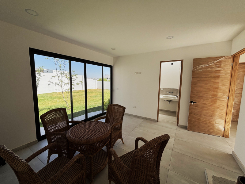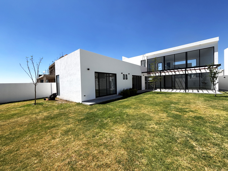 Moderna Cocina con barra grande que se integra a la sala y comedor y vista al enorme jardín de aprox 320m2, terraza con pergola, baño de visitas, las recámaras cuentan con baño propio, pasillo servicio, bodega