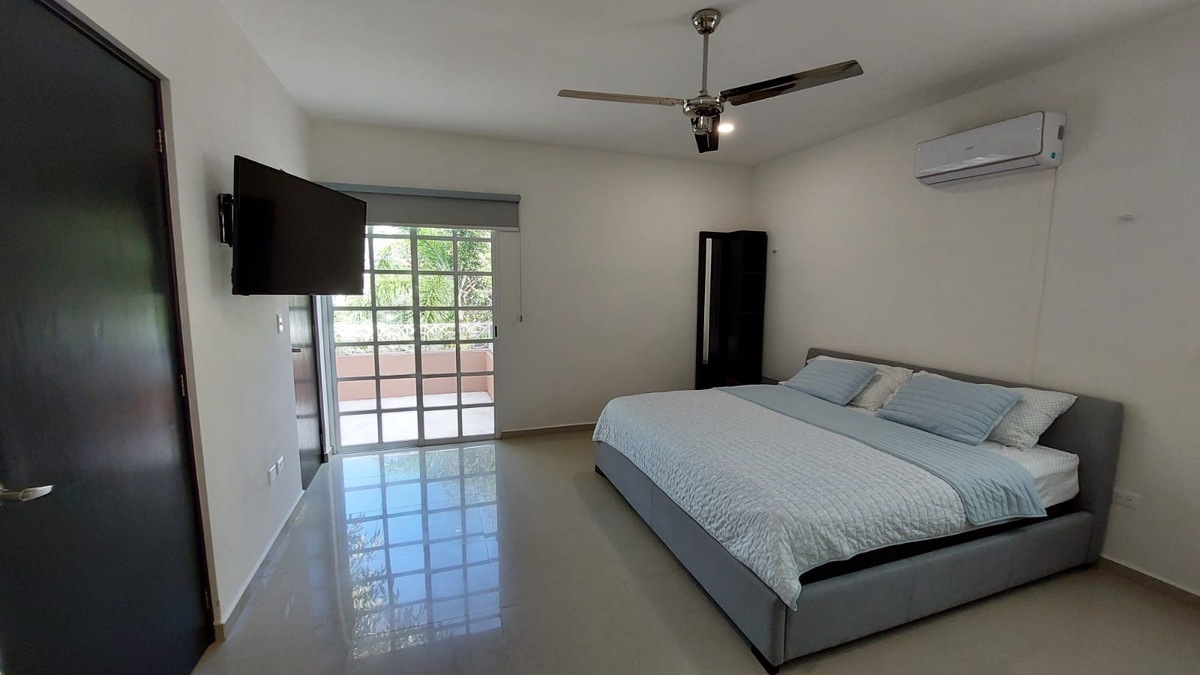 -Master bedroom with walk-in closet, bathroom with double sink and double shower + covered balcony