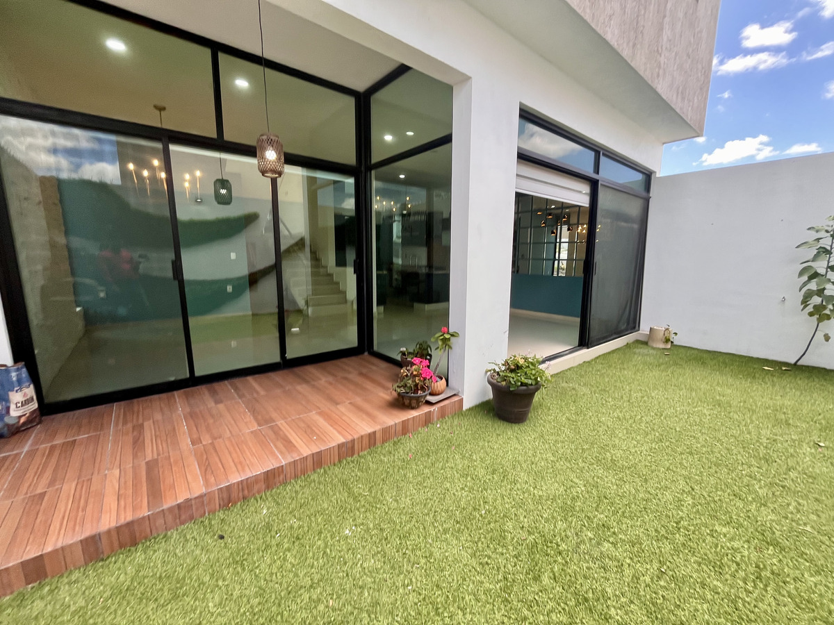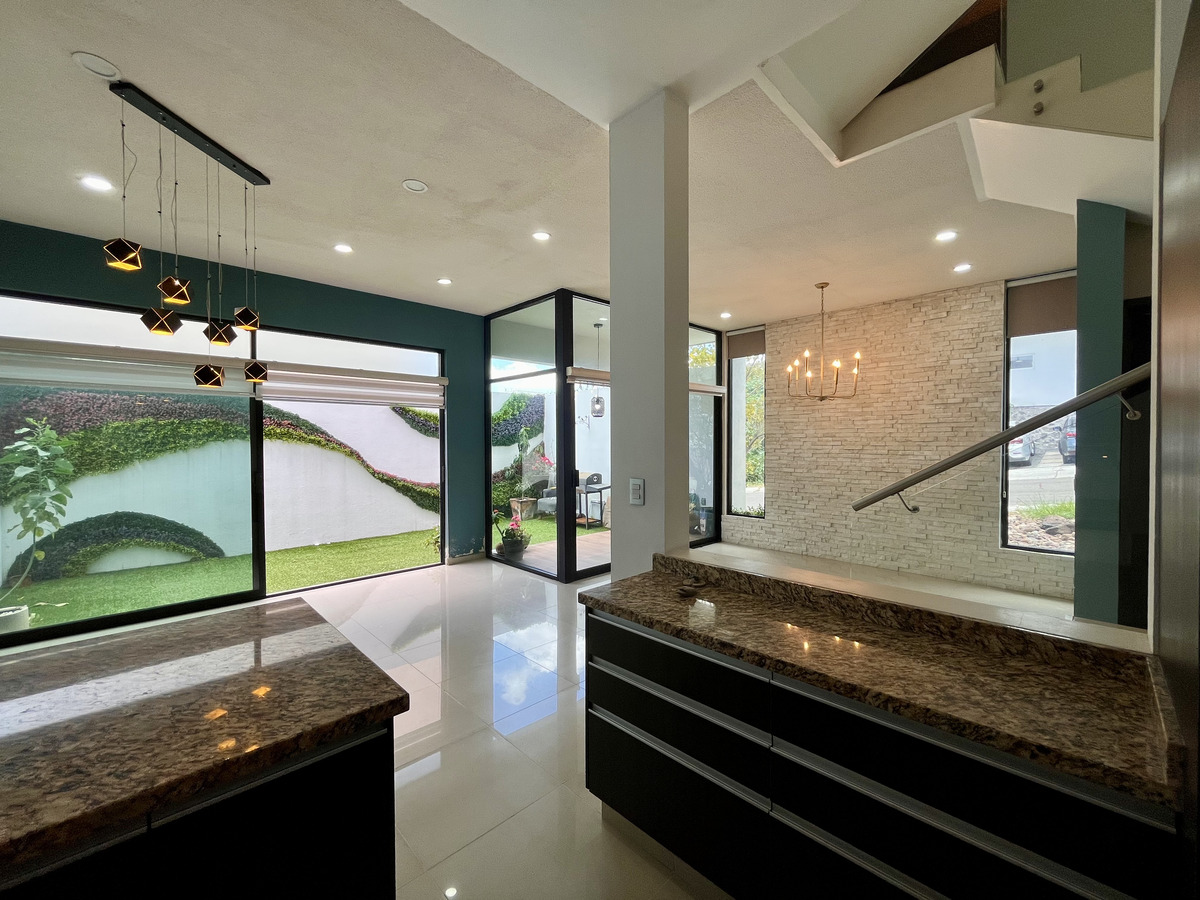 IDEAL PARA INVERSIÓN POR SU CERCANÍA CON LA UNIVERSIDAD ANÁHUAC, O PARA VIVIRLA CON TU FAMILIA! Doble frente y de 3.5 niveles! Cochera para 2 autos, ropero para invitados, sala y comedor abierto que se conjunta con el jardín con pasto sintético y su terraza techada! Aparte encontramos una dinámica cocina con amplios espacios de almacenaje y barra desayunadora, más medio baño social, todo esto en planta baja.