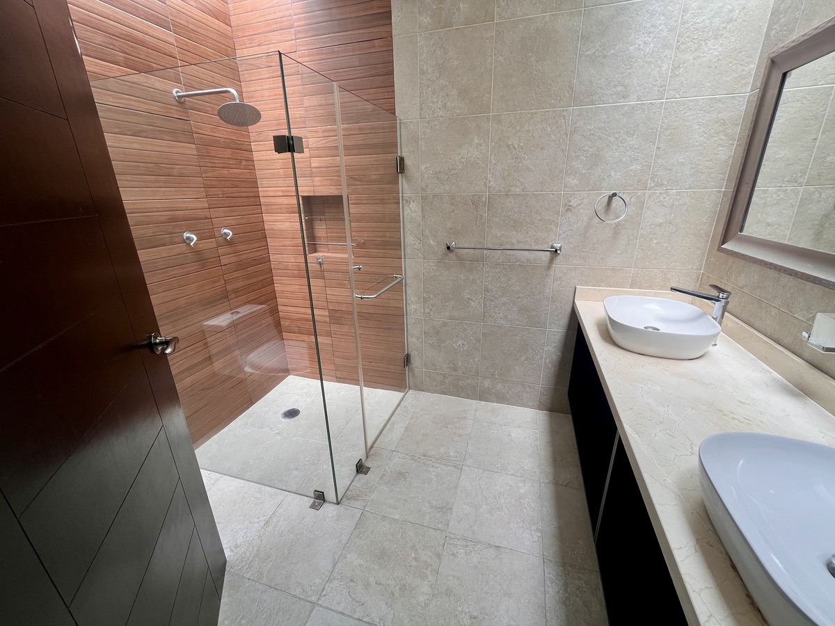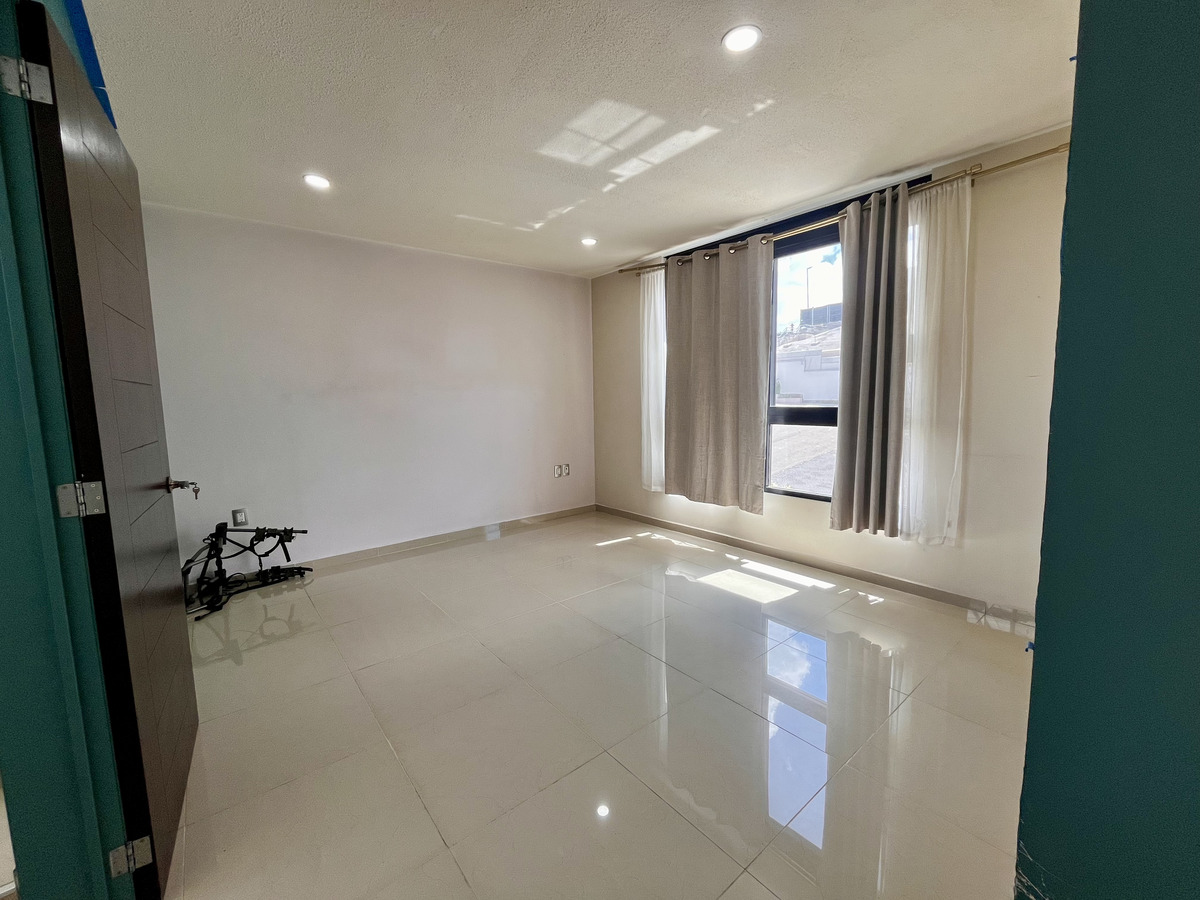 En seguida encontramos el family room o área de TV con ventilador de techo y dos recámaras secundarias con closet cada una, más baño completo. En el inter nivel sigue la recámara principal con walk in clóset y su baño privado. Después en el tercer nivel encontramos el roof garden con pérgola, medio baño y gran vista al valle!