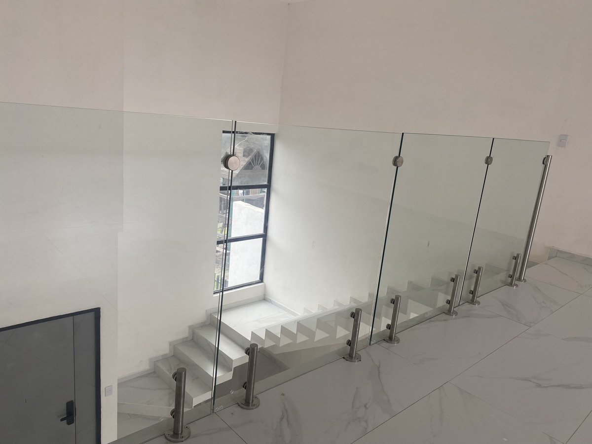 • Railing with tempered glass.