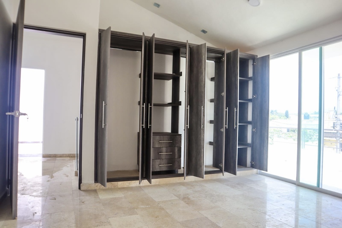 La casa cuenta con 3 recámaras, cada una de ellas con su propio baño para mayor privacidad y comodidad. Además, posee un baño auxiliar que será de gran utilidad en tus reuniones sociales. La habitación principal, además de su baño privado, cuenta con un amplio clóset para almacenar todas tus pertenencias.
