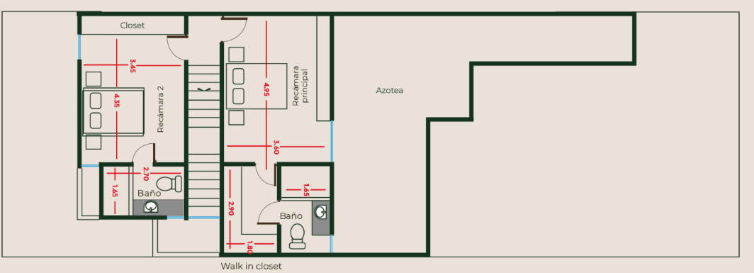 • Recámara con espacio para clóset corrido y 1 baño completo