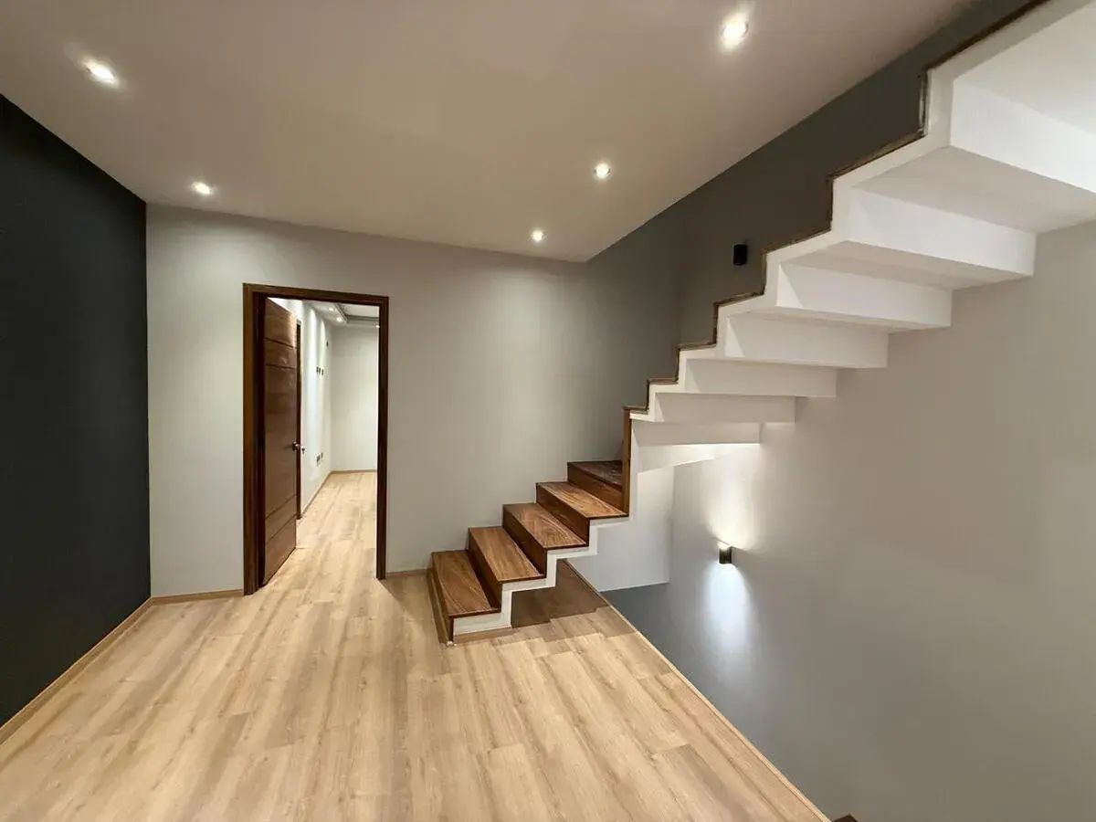 The house has a large living-dining room and a flex area that converts into a bedroom on the ground floor, a spacious full bathroom with luxury finishes.