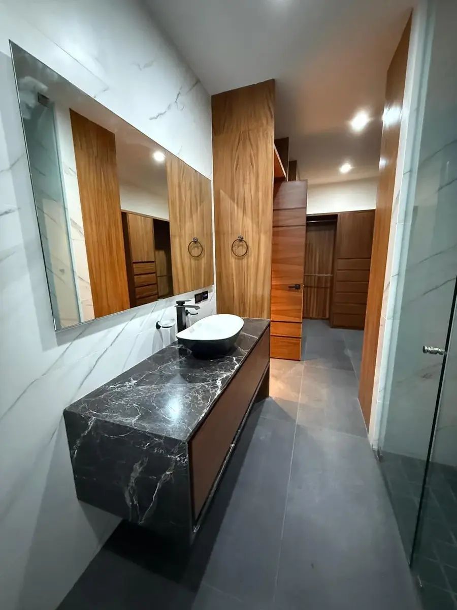 La casa cuenta con una amplia sala comedor y un área flex que se convierte en recámara en planta baja, un espacioso baño completo, con acabados de lujo .