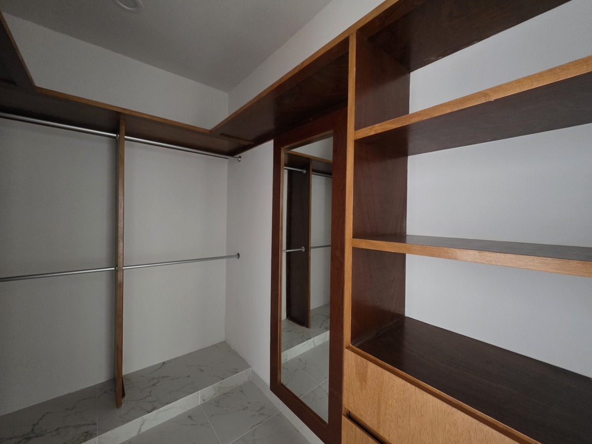 El diseño del mobiliario es único y particular a la estructura de la casa integrando una adecuada iluminación para los closets y vestidores manteniendo la elegancia y luz necesarias.