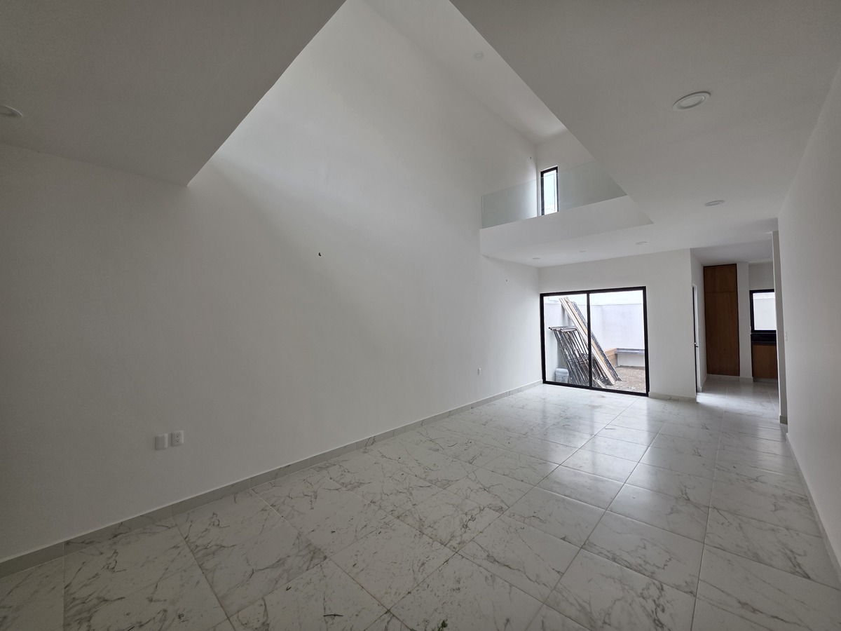 - Área de sala y comedor con doble altura