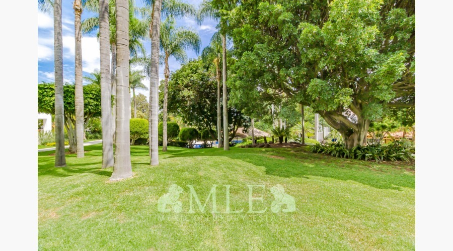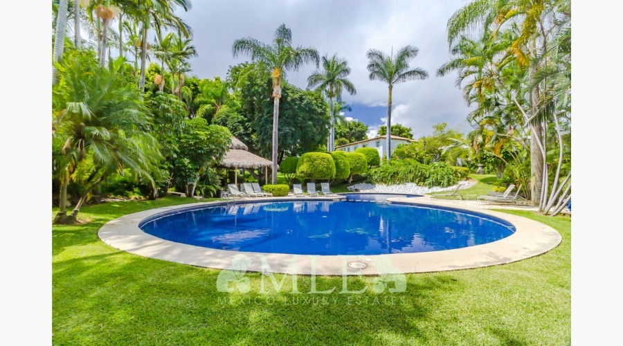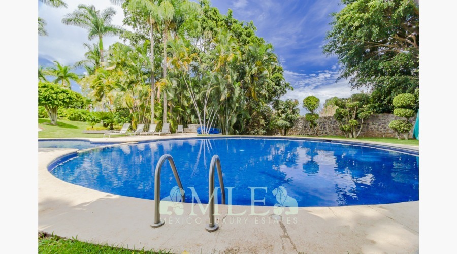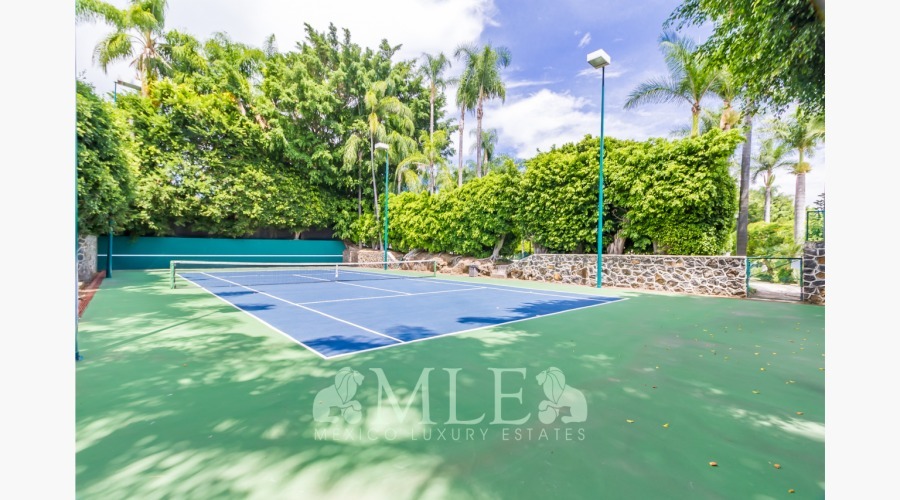 Área compartidas: amplio jardín compartido con palmeras, árboles majestuosos, cancha de tenis, alberca, solar, enorme para nadar